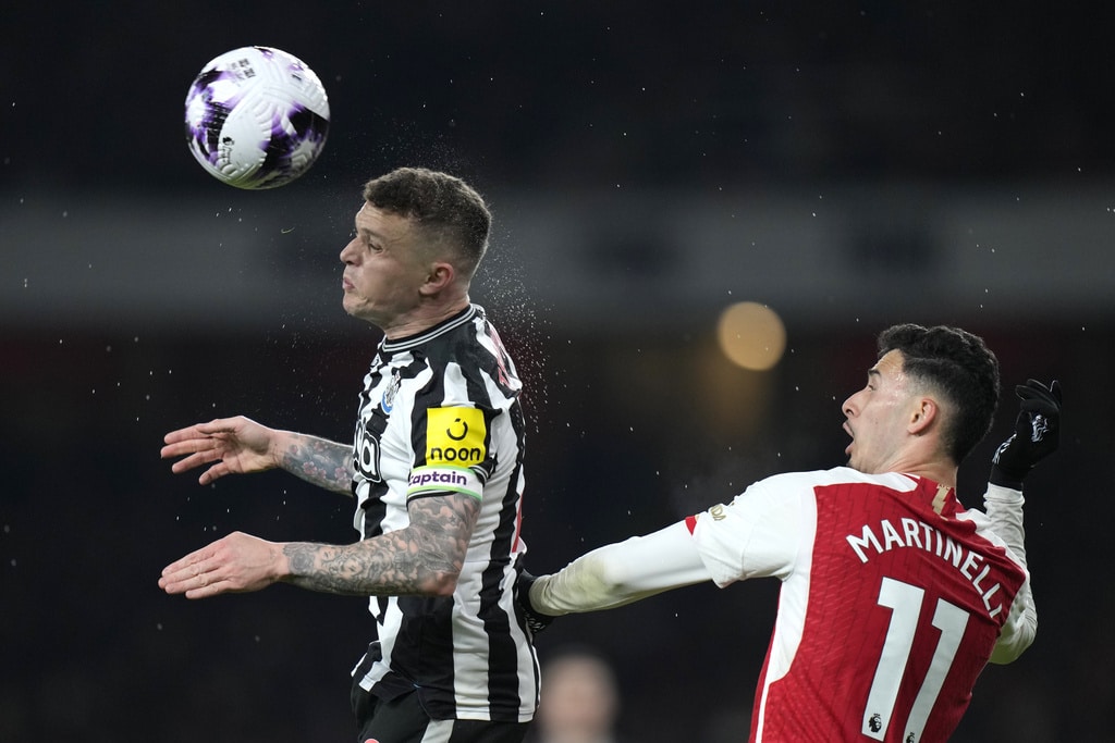 Newcastle’s Sean Longstaff, left, and Arsenal’s Kai Havertz challenge for the ball during the English Premier League soccer match between Arsenal and Newcastle United at the Emirates stadium in London, England, Saturday, Feb. 24, 2024. (AP Photo/Alastair Grant)Arsenal’s Emile Smith Rowe, centre, and Newcastle’s Kieran Trippier challenge for the ball during the English Premier League soccer match between Arsenal and Newcastle United at the Emirates stadium in London, England, Saturday, Feb. 24, 2024. (AP Photo/Alastair Grant)Newcastle’s Fabian Schaer, left, reacts after Arsenal’s Bukayo Saka, not in the picture, scored his side’s third goal during the English Premier League soccer match between Arsenal and Newcastle United at the Emirates stadium in London, England, Saturday, Feb. 24, 2024. (AP Photo/Alastair Grant)Newcastle’s goalkeeper Loris Karius misses Arsenal side’s fourth goal during the English Premier League soccer match between Arsenal and Newcastle United at the Emirates stadium in London, England, Saturday, Feb. 24, 2024. (AP Photo/Alastair Grant)Arsenal’s Jakub Kiwior, right, scores his side’s fourth goal during the English Premier League soccer match between Arsenal and Newcastle United at the Emirates stadium in London, England, Saturday, Feb. 24, 2024. (AP Photo/Alastair Grant)Newcastle’s Kieran Trippier, left, and Arsenal’s Gabriel Martinelli challenge for the ball during the English Premier League soccer match between Arsenal and Newcastle United at the Emirates stadium in London, England, Saturday, Feb. 24, 2024. (AP Photo/Alastair Grant)Arsenal’s Kai Havertz, centre, controls the ball during the English Premier League soccer match between Arsenal and Newcastle United at the Emirates stadium in London, England, Saturday, Feb. 24, 2024. (AP Photo/Alastair Grant)Arsenal’s Kai Havertz, left, and Newcastle’s Bruno Guimaraes, bottom challenge for the ball during the English Premier League soccer match between Arsenal and Newcastle United at the Emirates stadium in London, England, Saturday, Feb. 24, 2024. (AP Photo/Alastair Grant)Arsenal’s Declan Rice, right, shoots the ball during the English Premier League soccer match between Arsenal and Newcastle United at the Emirates stadium in London, England, Saturday, Feb. 24, 2024. (AP Photo/Alastair Grant)