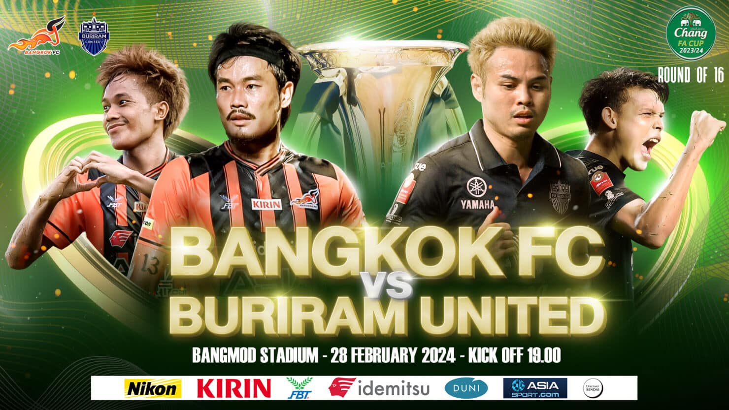 28 กุมภาพันธ์ 2567 เวลา 19.00 น. ฟุตบอล ช้าง เอฟเอ คัพ 2023/24 บางกอก เอฟซี จะลงเล่นพบกับทีม บุรีรัมย์ ยูไนเต็ด The Thaiger พาวิเคราะห์ก่อนเกม พร้อมคาดการณ์ 11 ตัวจริง และรับลิงก์ ดูบอลสด ได้ที่นี่