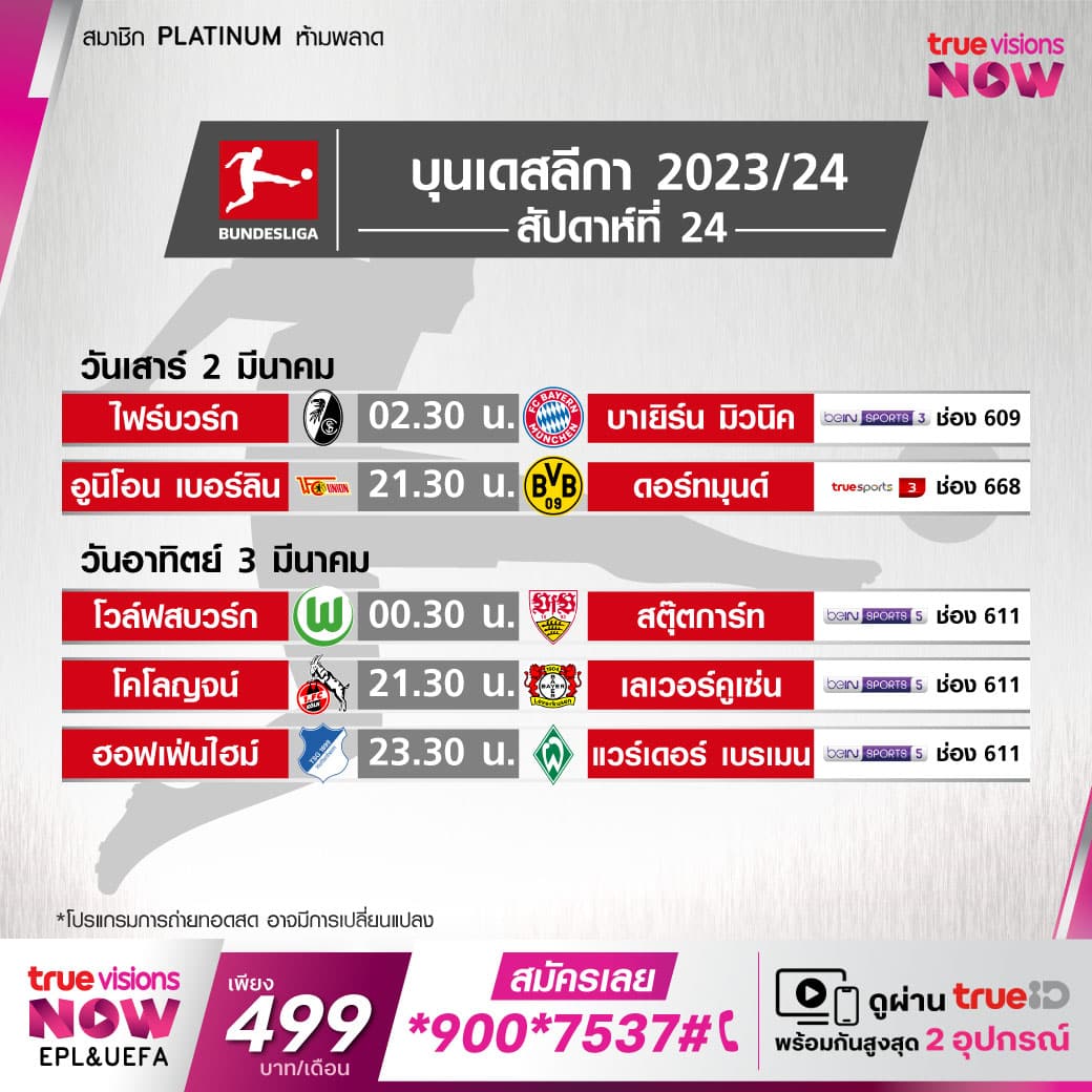 - 21:30 ยูเนี่ยน เบอร์ลิน พบ ดอร์ทมุนด์ True Football 3 / PPTV