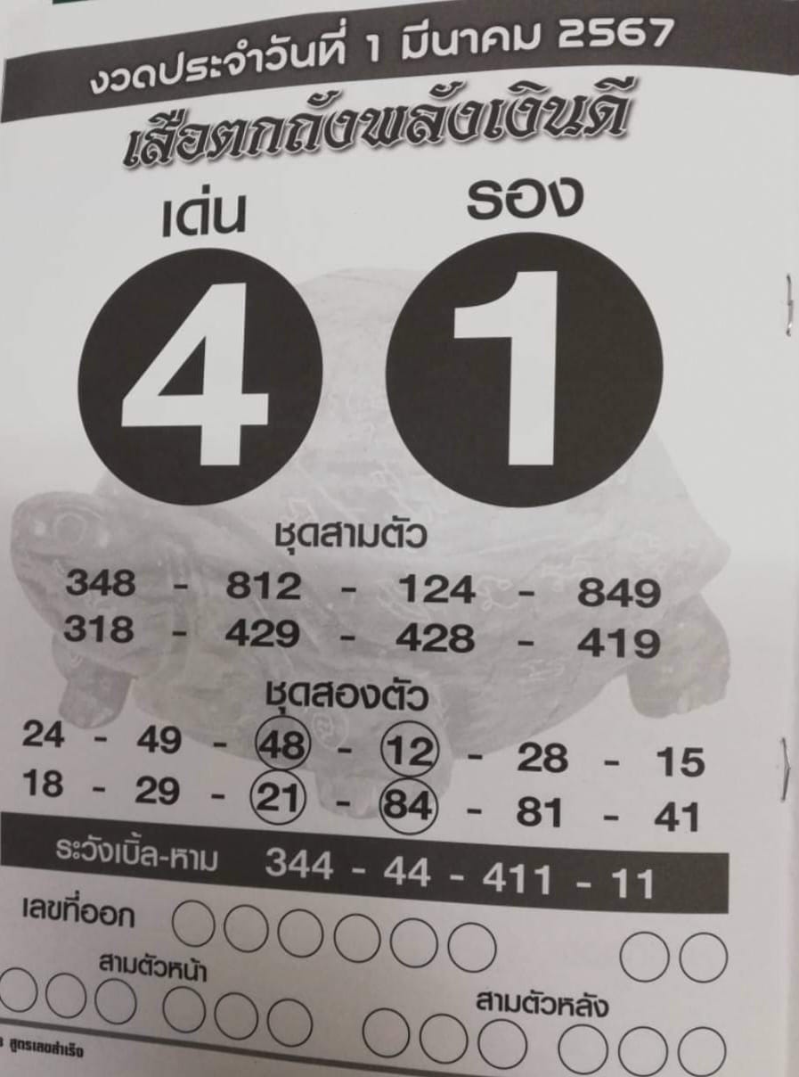 มาแต่เนิ่นๆ เลขเด็ด เสือตกถัง พลังเงินดี 16 มี.ค. 2567 งวดนี้จัดครบเลขเด่น เลขรอง พร้อมแนะระวังเลขเบิ้ลที่น่าจะมาแรง