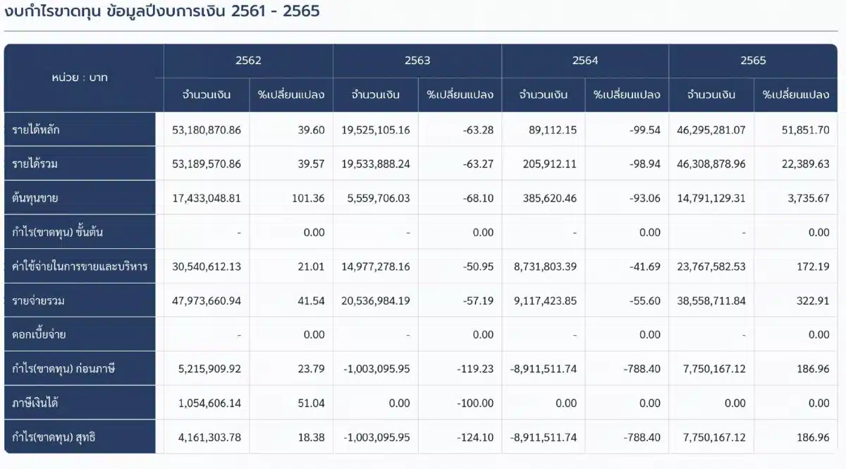 ปี 2565 รายได้ 46.30 ล้านบาท กำไร 7.75 ล้านบาท