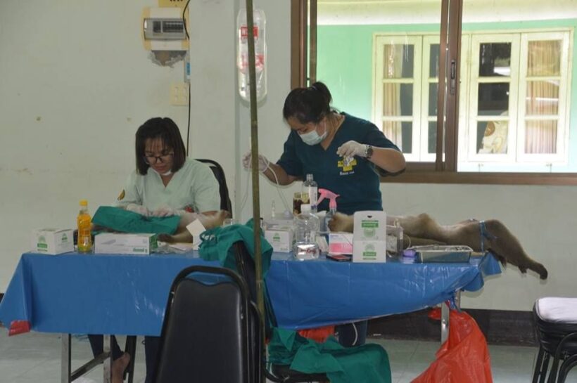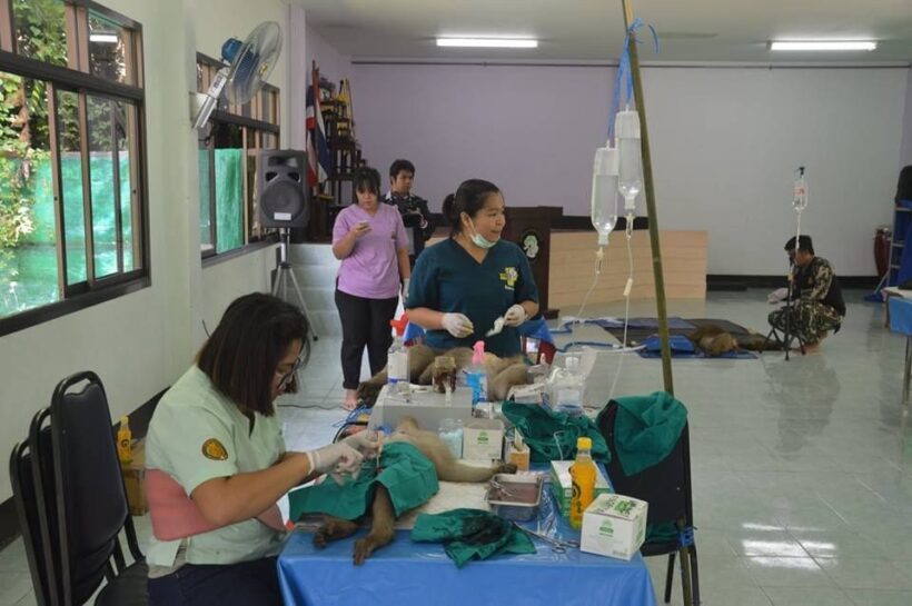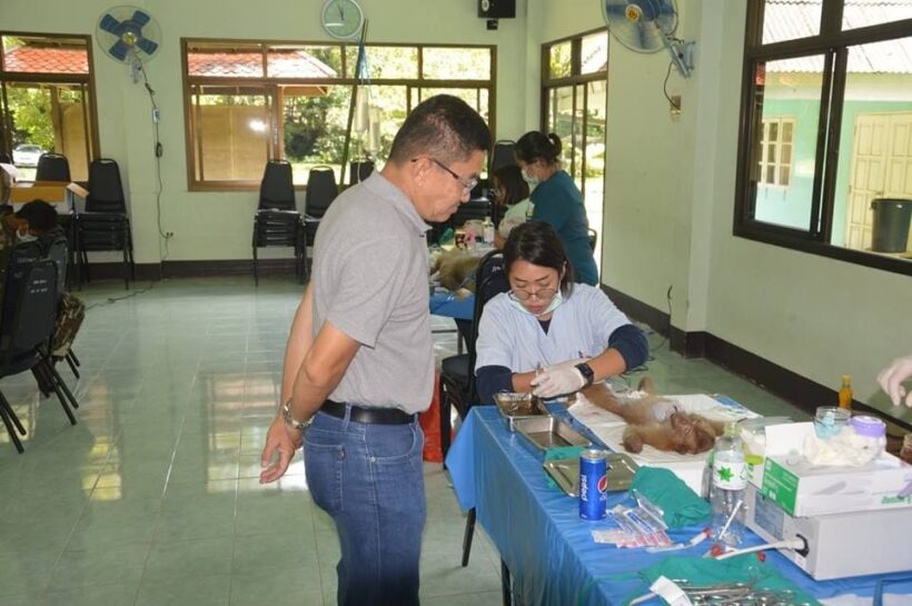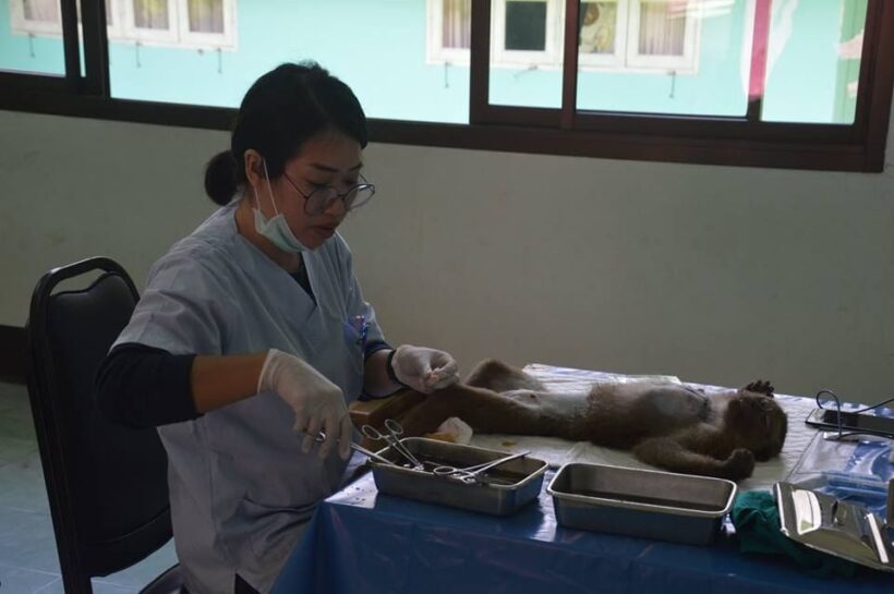 เจ้าหน้าที่สัตวแพทย์จากกรมอุทยานแห่งชาติสัตว์ป่าและพันธุ์พืชเริ่มทำหมันลิงเขาโต๊ะแซะ