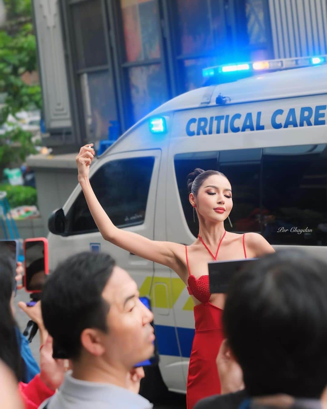 สำหรับซีนเปิดตัวนางงามดังกล่าว ใบเฟิร์น และทีมนักแสดงที่รับบทเป็นแพทย์ พยาบาล และเจ้าหน้าที่กู้ภัย ได้ขับรถพยาบาล พร้อมด้วยเสียงไซเรน ก่อนจะเข็นเตียงผู้ป่วยลงมาโชว์ปั๊มหัวใจอย่างสมจริง จนนางงามสาวฟื้นคืนชีพ เดินสับ ๆ เข้ากองประกวดตามคอนเซ็ปต์ตายแล้วฟื้น