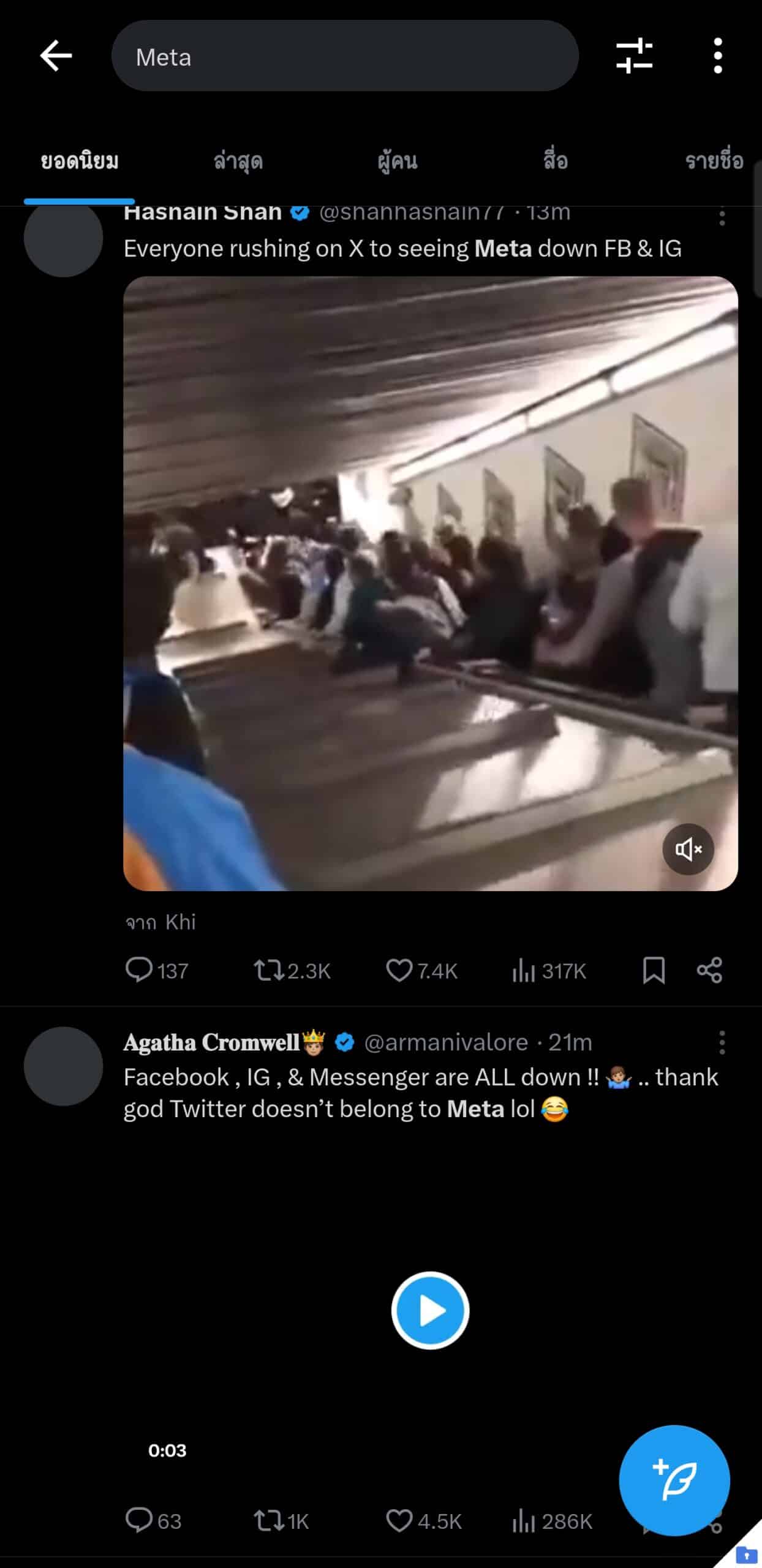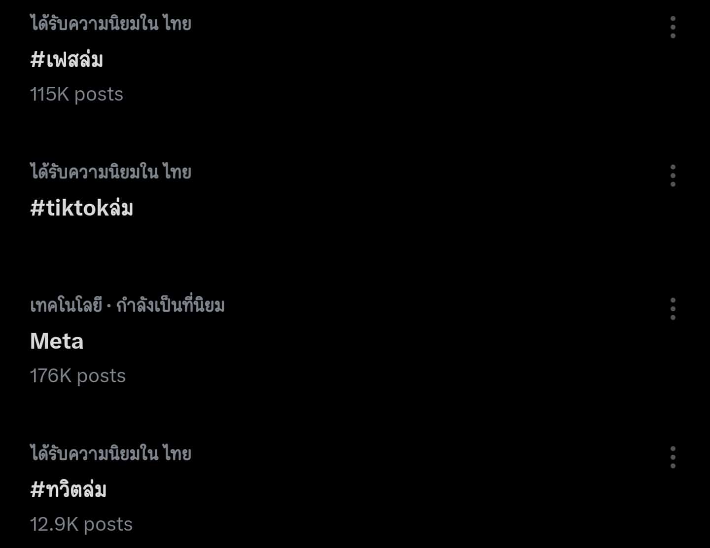 ส่งผลให้แฮซแท็ก #ไอจีล่ม และ #เฟสล่ม กระทั่งติดเทรนด์อันดับ 1 ใน (X) รวมไปถึง #Tiktokล่ม ด้วย