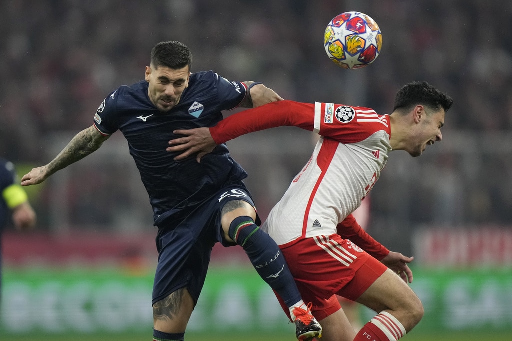 Bayern’s Thomas Mueller, second right, scores his side’s second goal during the Champions League round of 16 second leg soccer match between FC Bayern Munich and Lazio at the Allianz Arena stadium in Munich, Germany, Tuesday, March 5, 2024. (AP Photo/Matthias Schrader)Bayern’s Harry Kane, left, and Bayern’s Leon Goretzka celebrate at the end of the Champions League round of 16 second leg soccer match between FC Bayern Munich and Lazio at the Allianz Arena stadium in Munich, Germany, Tuesday, March 5, 2024. Bayern Munich won 3-0. (AP Photo/Matthias Schrader)Lazio’s Pedro, center, is challenged by Bayern’s Leroy Sane, right, and Bayern’s Joshua Kimmich during the Champions League round of 16 second leg soccer match between FC Bayern Munich and Lazio at the Allianz Arena stadium in Munich, Germany, Tuesday, March 5, 2024. (AP Photo/Matthias Schrader)Lazio’s Mario Gila, right, heads the ball past Bayern’s Leroy Sane during the Champions League round of 16 second leg soccer match between FC Bayern Munich and Lazio at the Allianz Arena stadium in Munich, Germany, Tuesday, March 5, 2024. (AP Photo/Matthias Schrader)Bayern’s Thomas Mueller, left, attempts a shot at goal in front of Lazio’s Alessio Romagnoli during the Champions League round of 16 second leg soccer match between FC Bayern Munich and Lazio at the Allianz Arena stadium in Munich, Germany, Tuesday, March 5, 2024. (AP Photo/Matthias Schrader)Bayern’s Harry Kane, right, is challenged by Lazio’s Matias Vecino during the Champions League round of 16 second leg soccer match between FC Bayern Munich and Lazio at the Allianz Arena stadium in Munich, Germany, Tuesday, March 5, 2024. (AP Photo/Matthias Schrader)Bayern’s Thomas Mueller gestures during the Champions League round of 16 second leg soccer match between FC Bayern Munich and Lazio at the Allianz Arena stadium in Munich, Germany, Tuesday, March 5, 2024. (AP Photo/Matthias Schrader)Lazio’s Mattia Zaccagni, left, fights for the ball with Bayern’s Aleksandar Pavlovic during the Champions League round of 16 second leg soccer match between FC Bayern Munich and Lazio at the Allianz Arena stadium in Munich, Germany, Tuesday, March 5, 2024. (AP Photo/Matthias Schrader)Bayern’s Jamal Musiala, center, is challenged by Lazio’s Matteo Guendouzi, right, and Lazio’s Mario Gila during the Champions League round of 16 second leg soccer match between FC Bayern Munich and Lazio at the Allianz Arena stadium in Munich, Germany, Tuesday, March 5, 2024. (AP Photo/Matthias Schrader)