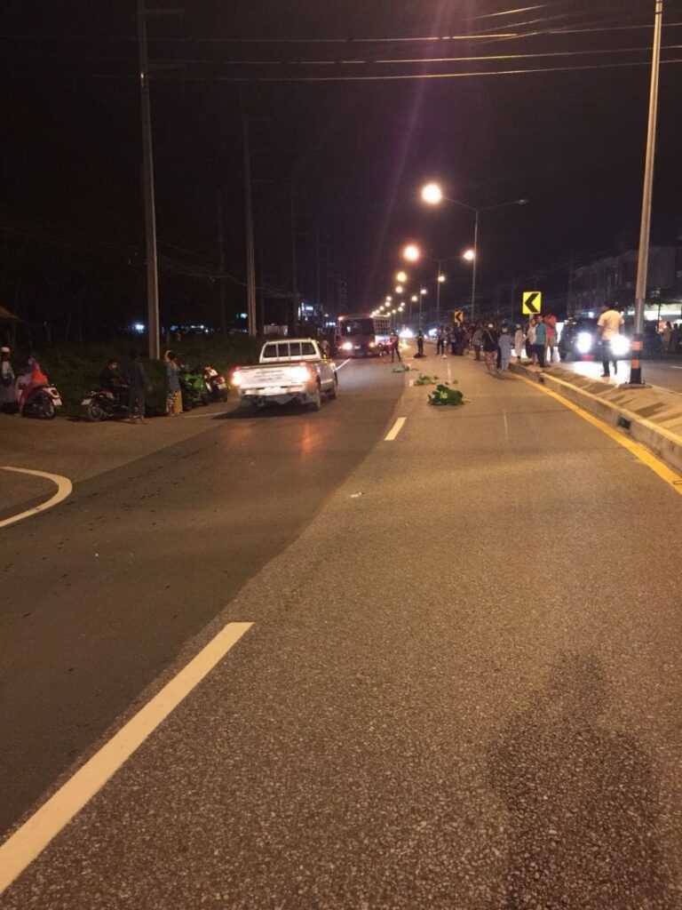 จากการตรวจสอบร่องรอยบนถนนมีร่องรอยการล้มและมีคราบเลือดที่เสาบอกสัญญาณจราจร ทางโค้งซึ่งเชื่อว่าจุดบริเวณเสาจราจรเป็นจุดที่ศีรษะของผู้ตายไปกระแทกกับเสาดังกล่าว จากนั้นทางเจ้าหน้าที่ฯจึงได้นำศพส่งโรงพยาบาลถลาง เพื่อให้แพทย์ชันสูตรอย่างละเอียด