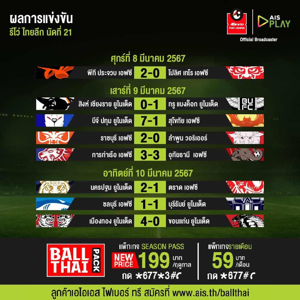 >> ตารางคะแนน ไทยลีก 2023/24 อัปเดตล่าสุด เช็คคะแนนทุกทีมได้ที่นี่ <<