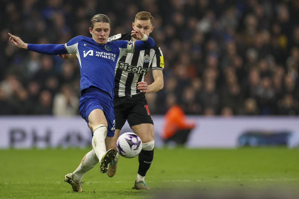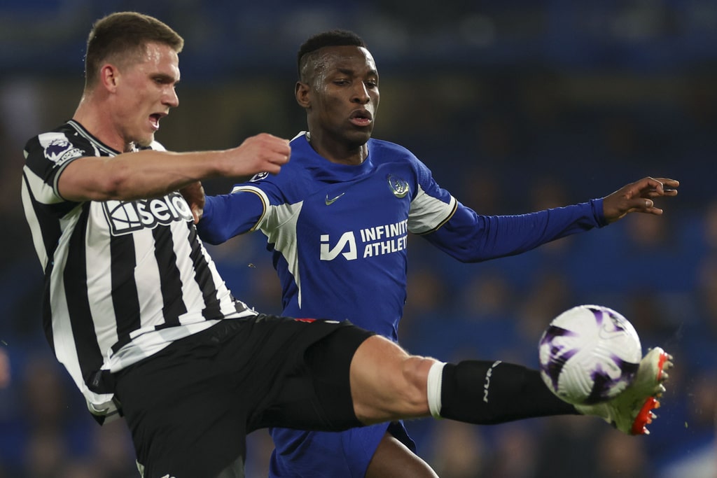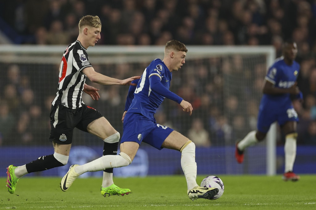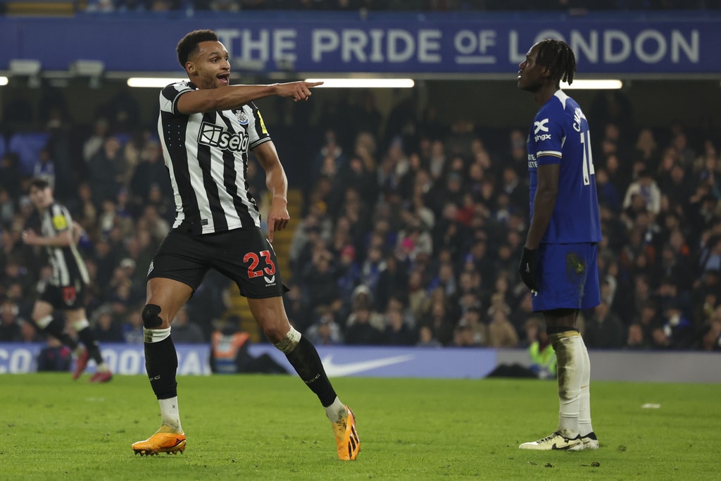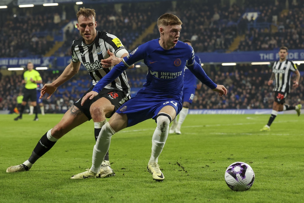 Chelsea’s Cole Palmer, right, duels for the ball with Newcastle’s Anthony Gordon during the English Premier League soccer match between Chelsea and Newcastle at Stamford Bridge stadium in London, Monday, March 11, 2024. (AP Photo/Ian Walton)Chelsea’s head coach Mauricio Pochettino celebrates with Chelsea’s Mykhailo Mudryk at the end of the English Premier League soccer match between Chelsea and Newcastle at Stamford Bridge stadium in London, Monday, March 11, 2024. (AP Photo/Ian Walton)Chelsea’s Malo Gusto controls the ball during the English Premier League soccer match between Chelsea and Newcastle at Stamford Bridge stadium in London, Monday, March 11, 2024. (AP Photo/Ian Walton)Newcastle’s Jacob Murphy celebrates after scoring his side’s second goal during the English Premier League soccer match between Chelsea and Newcastle at Stamford Bridge stadium in London, Monday, March 11, 2024. (AP Photo/Ian Walton)Chelsea’s Conor Gallagher, left, duels for the ball with Newcastle’s Emil Krafth during the English Premier League soccer match between Chelsea and Newcastle at Stamford Bridge stadium in London, Monday, March 11, 2024. (AP Photo/Ian Walton)Newcastle’s Alexander Isak, left, duels for the ball with Chelsea’s Marc Cucurella during the English Premier League soccer match between Chelsea and Newcastle at Stamford Bridge stadium in London, Monday, March 11, 2024. (AP Photo/Ian Walton)Chelsea’s Conor Gallagher kicks the ball during the English Premier League soccer match between Chelsea and Newcastle at Stamford Bridge stadium in London, Monday, March 11, 2024. (AP Photo/Ian Walton)Newcastle’s Dan Burn, left, duels for the ball with Chelsea’s Cole Palmer during the English Premier League soccer match between Chelsea and Newcastle at Stamford Bridge stadium in London, Monday, March 11, 2024. (AP Photo/Ian Walton)Newcastle’s Sven Botman, left, duels for the ball with Chelsea’s Nicolas Jackson during the English Premier League soccer match between Chelsea and Newcastle at Stamford Bridge stadium in London, Monday, March 11, 2024. (AP Photo/Ian Walton)