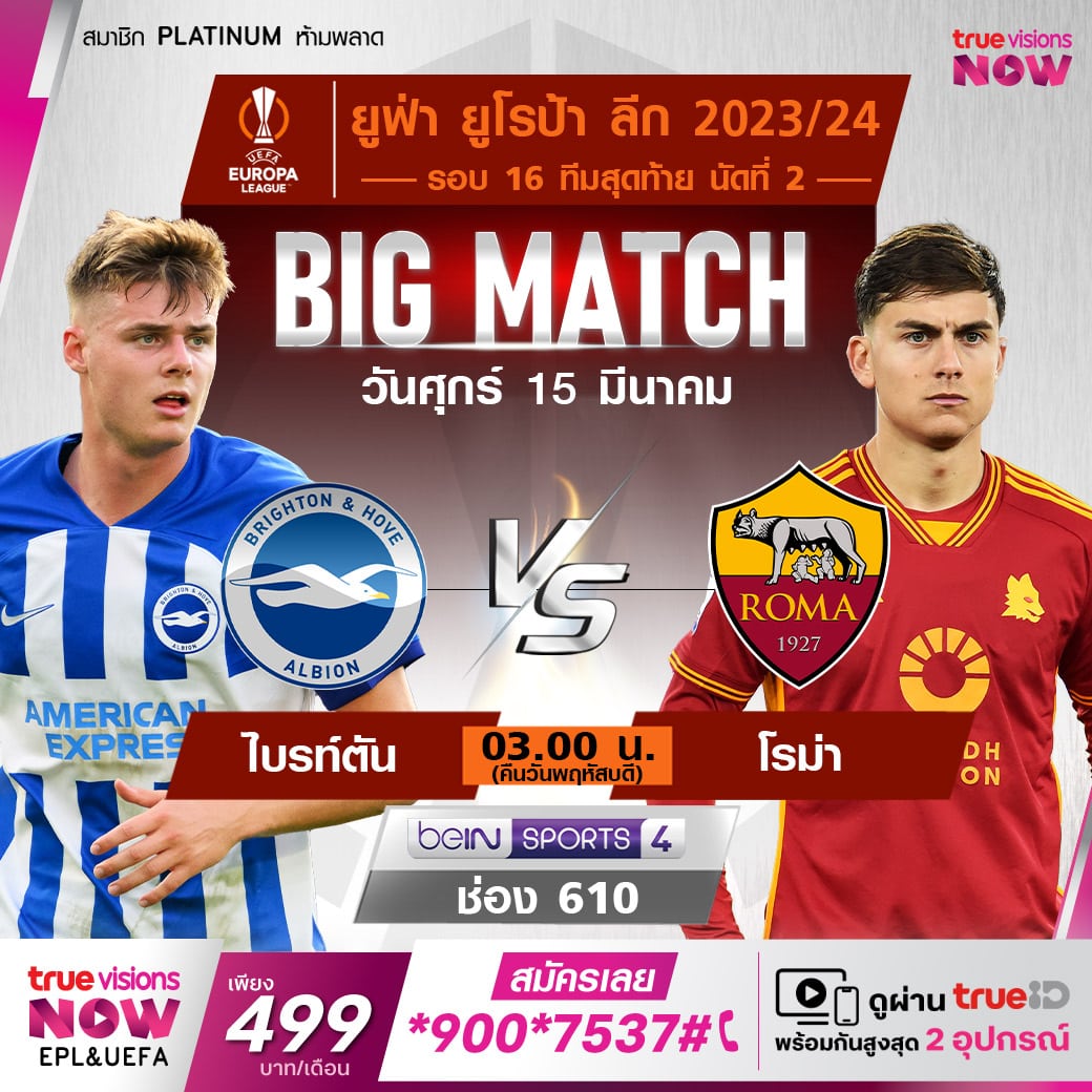 ดูบอลสด ยูฟ่า ยูโรป้าลีก โรม่า VS ไบรท์ตัน ลิงก์ดูออนไลน์