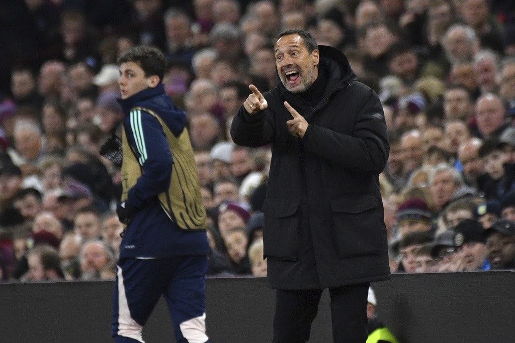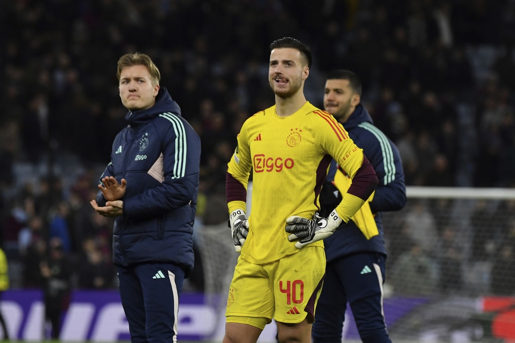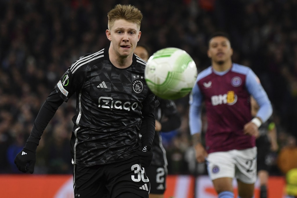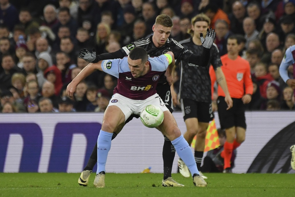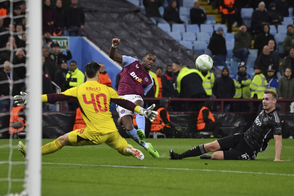 Ajax’s Ahmetcan Kaplan, falls under pressure from Aston Villa’s Ollie Watkins during the Europa Conference League round of 16 second leg soccer match between Aston Villa and Ajax at Villa Park in Birmingham, England, Thursday, March 14, 2024. (AP Photo/Rui Vieira)Ajax’s goalkeeper Diant Ramaj reacts in font of his team fans after the end of the Europa Conference League round of 16 second leg soccer match between Aston Villa and Ajax at Villa Park in Birmingham, England, Thursday, March 14, 2024. Villa won the game 4-0, and the tie over 2 legs 4-1. (AP Photo/Rui Vieira)Aston Villa’s Jhon Duran celebrates after scoring his side third goal during the Europa Conference League round of 16 second leg soccer match between Aston Villa and Ajax at Villa Park in Birmingham, England, Thursday, March 14, 2024. (AP Photo/Rui Vieira)Referee Orel Grinfield show a red card to Ajax’s Sivert Mannsverk, left, for a second yellow card during the Europa Conference League round of 16 second leg soccer match between Aston Villa and Ajax at Villa Park in Birmingham, England, Thursday, March 14, 2024. (AP Photo/Rui Vieira)Ajax’s head coach John van’t Schip gestures to hos players during the Europa Conference League round of 16 second leg soccer match between Aston Villa and Ajax at Villa Park in Birmingham, England, Thursday, March 14, 2024. (AP Photo/Rui Vieira)Aston Villa’s Leon Bailey, left, celebrates after scoring his sides second goal during the Europa Conference League round of 16 second leg soccer match between Aston Villa and Ajax at Villa Park in Birmingham, England, Thursday, March 14, 2024. (AP Photo/Rui Vieira)Aston Villa’s Jhon Duran takes a shot at goal during the Europa Conference League round of 16 second leg soccer match between Aston Villa and Ajax at Villa Park in Birmingham, England, Thursday, March 14, 2024. (AP Photo/Rui Vieira)Aston Villa’s Ollie Watkins celebrates after scoring the opening goal of the game during the Europa Conference League round of 16 second leg soccer match between Aston Villa and Ajax at Villa Park in Birmingham, England, Thursday, March 14, 2024. (AP Photo/Rui Vieira)Ajax’s Kristian Hlynsson chases down a loose ball during the Europa Conference League round of 16 second leg soccer match between Aston Villa and Ajax at Villa Park in Birmingham, England, Thursday, March 14, 2024. (AP Photo/Rui Vieira)Aston Villa’s John McGinn, front defends the ball from Ajax’s Kenneth Taylor during the Europa Conference League round of 16 second leg soccer match between Aston Villa and Ajax at Villa Park in Birmingham, England, Thursday, March 14, 2024. (AP Photo/Rui Vieira)
