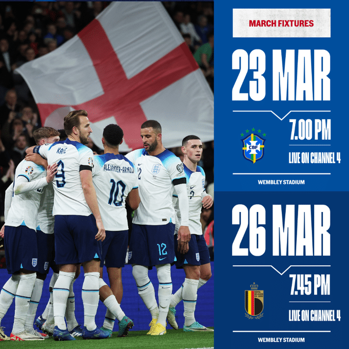 แกเร็ธ เซาธ์เกต ประกาศรายชื่อนักเตะ ทีมชาติอังกฤษ ชุดเตรียมลงแข่งขันนัดกระชับมิตรกับทีม บราซิล และ เบลเยี่ยม ช่วงสัปดาห์ออกมาแล้ว โดยมีแข้งหน้าใหม่ติดทีมเข้ามาหลายราย ตามการประกาศเมื่อวันที่ 14 มีนาคมที่ผ่านมา