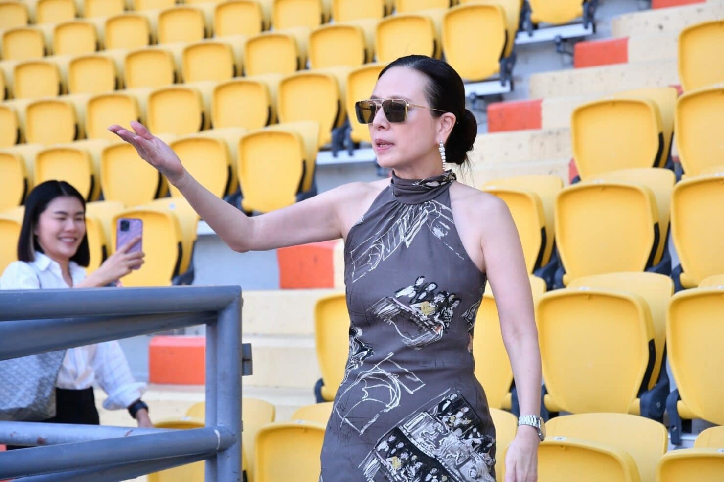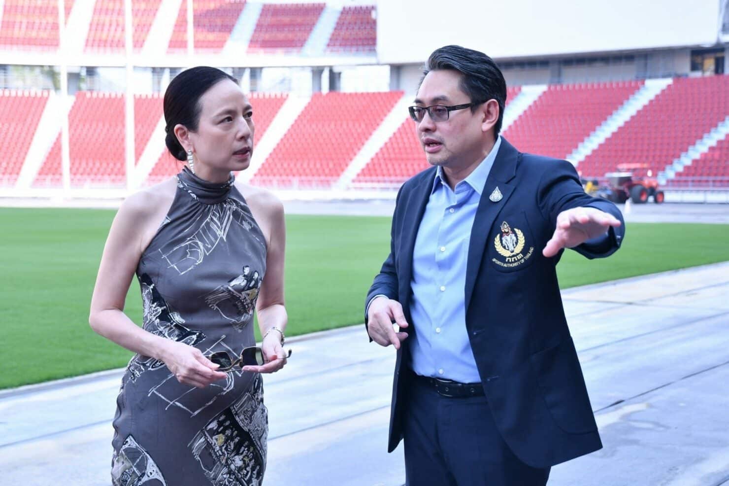“มาดามแป้ง” นายกสมาคมฯ ตรวจความพร้อม-สภาพสนามราชมังฯ ก่อนคัดบอลโลก
