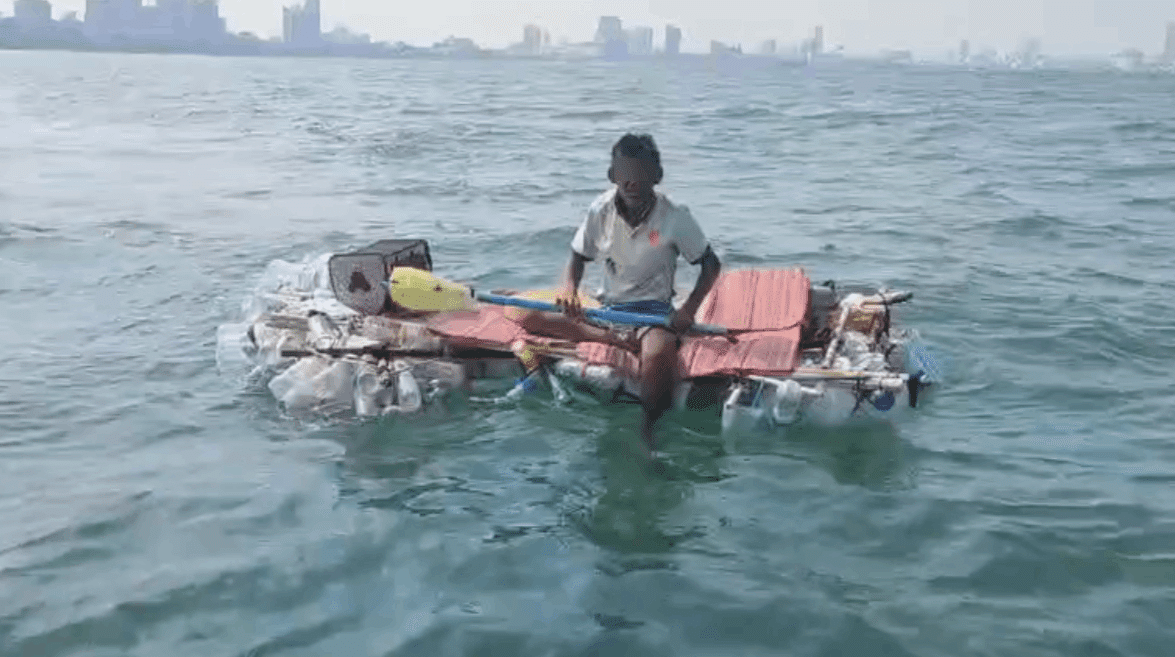 - จนท. ช่วยลุงลอยกลางทะเล นั่งแพขวดน้ำพลาสติก บอกจะไปเกาะล้าน