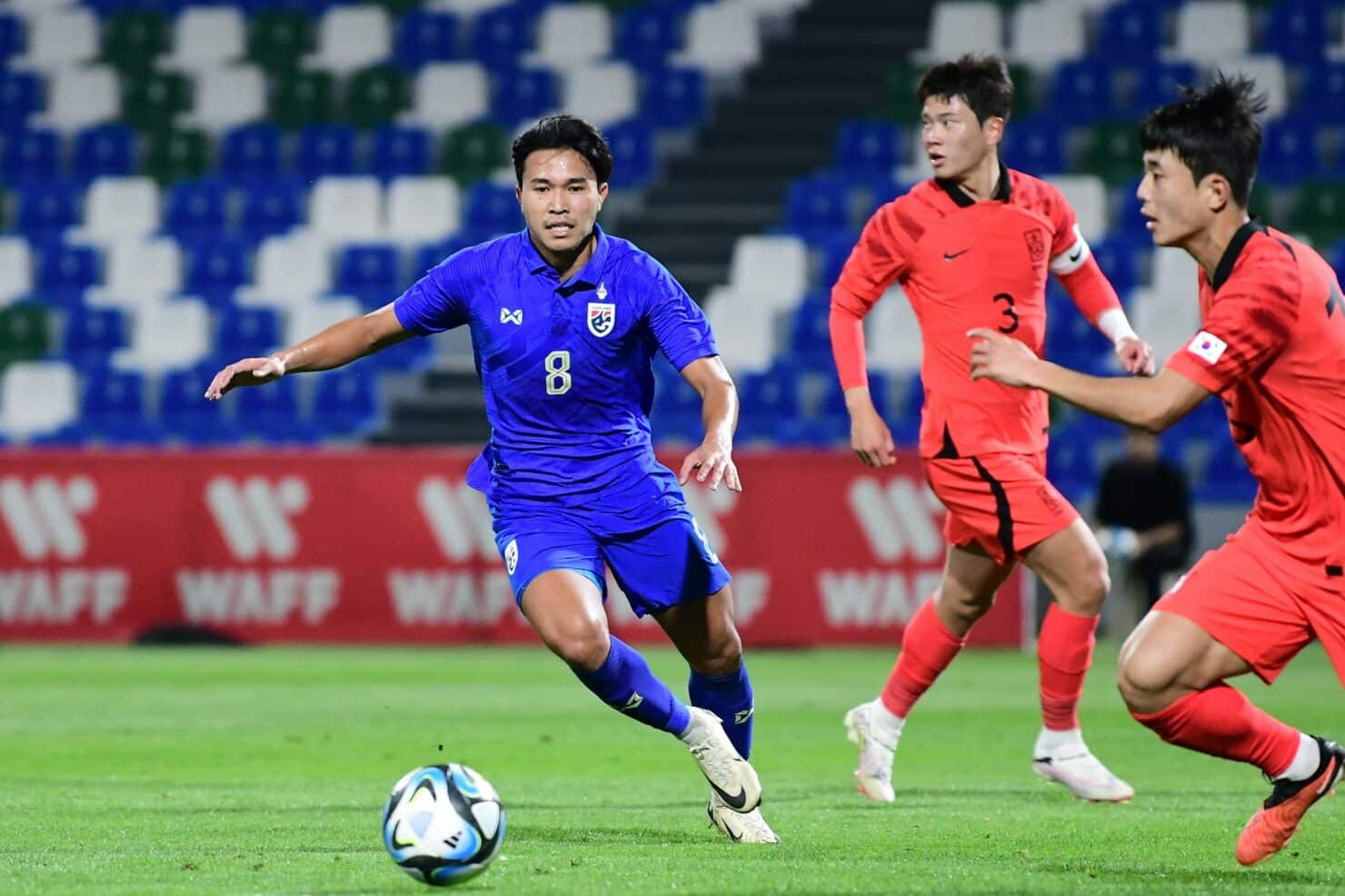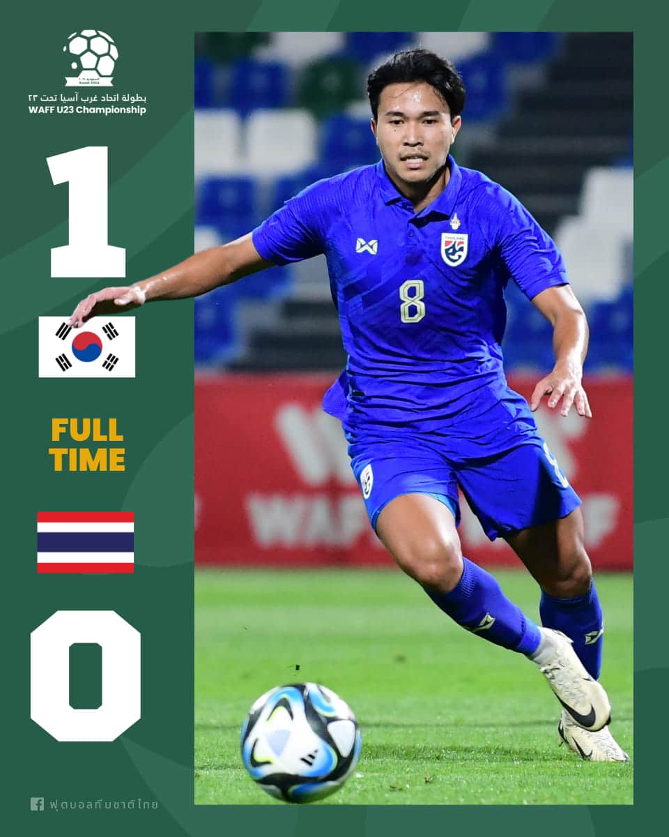 วันที่ 20 มีนาคม 2567 เวลา 24.00 น. ณ อัล ฟาเตห์ สเตเดียม การแข่งขันฟุตบอล WAFF U23 Championship – Saudi 2024 นัดแรก ฟุตบอลชายทีมชาติไทย รุ่นอายุไม่เกิน 23 ปี ลงสนามพบกับ เกาหลีใต้