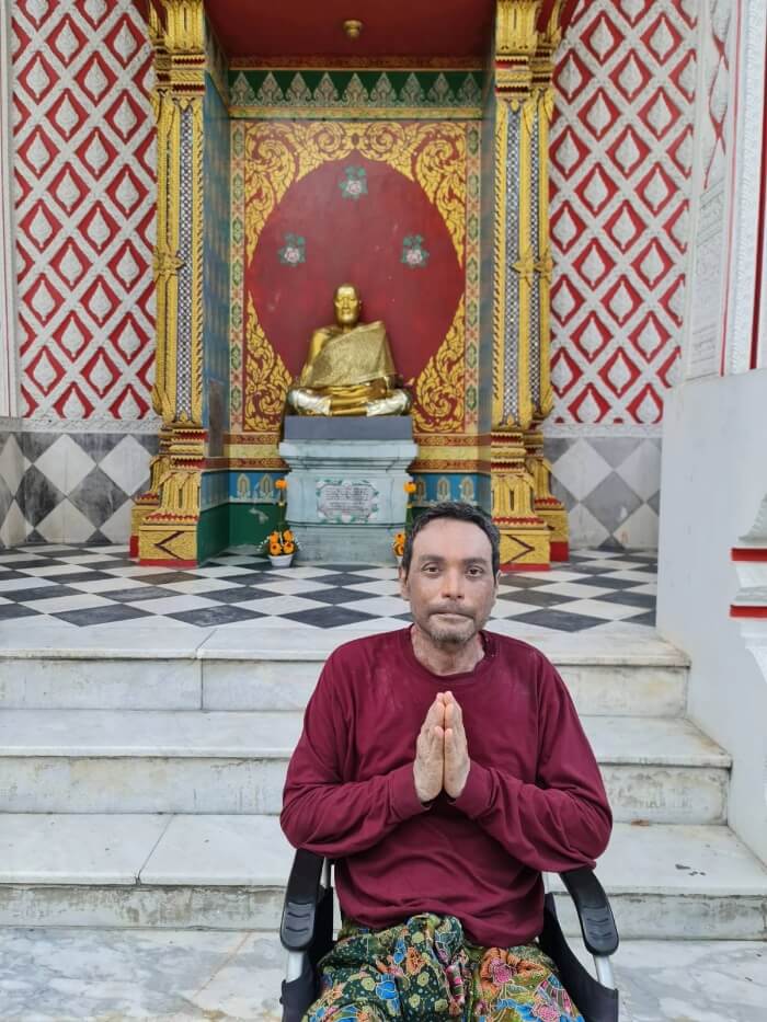 4. เกจิอาจารย์ (ขอสงวนชื่อ) ที่ให้ไปกราบท่าน 5 วัด เอ๋ บอกจำได้ขึ้นบันไดไป ไม่มีคนเลย เปิดทางโล่งให้พี่เมฆ เข็นรถไปถึงข้างหน้า พี่เมฆ บอกขอเดินเอง แล้วเดินเข้าไปกราบ
