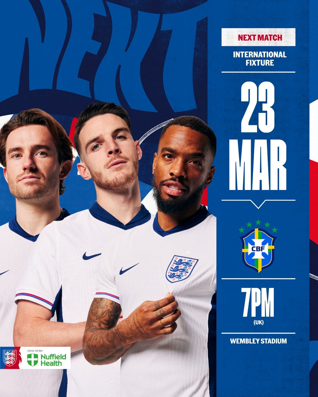 แกเร็ธ เซาธ์เกต เรียกแข้งหน้าใหม่มาเสริม 3 รายคือ จาร์แร็ด แบรนธ์เวต, แอนโธนี่ กอร์ดอน และ ค็อบบี้ ไมนู โดยมีลุ้นลงสนามแต่น่าจะเป็นได้แค่สำรอง การจัดทัพคาดไร้กัปตัน แฮร์รี่ เคน, จอร์แดน เฮนเดอร์สัน และ โคล พาลเมอร์ ที่เจ็บ ส่วนแกนหลักอย่าง แฮร์รี่ แม็กไกวร์, ฟิล โฟเด้น, เดแคลน ไรซ์, จู๊ด เบลลิงแฮม และ มาร์คัส แรชฟอร์ด พร้อมลงบู๊