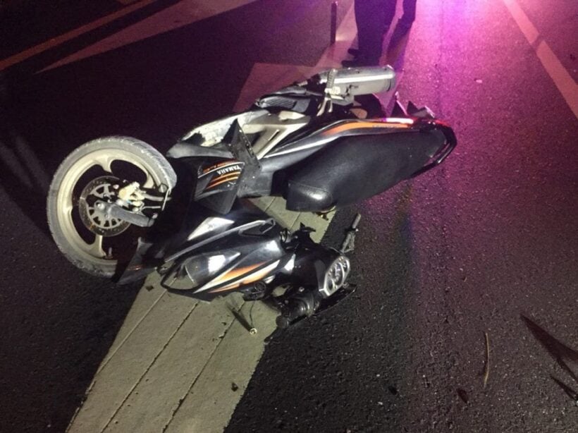 หนุ่ม-สาวชาวเชียงใหม่ขับรถจักรยานยนต์เสียหลักชนเสาไฟริมถนนบายพาสดับคาที่