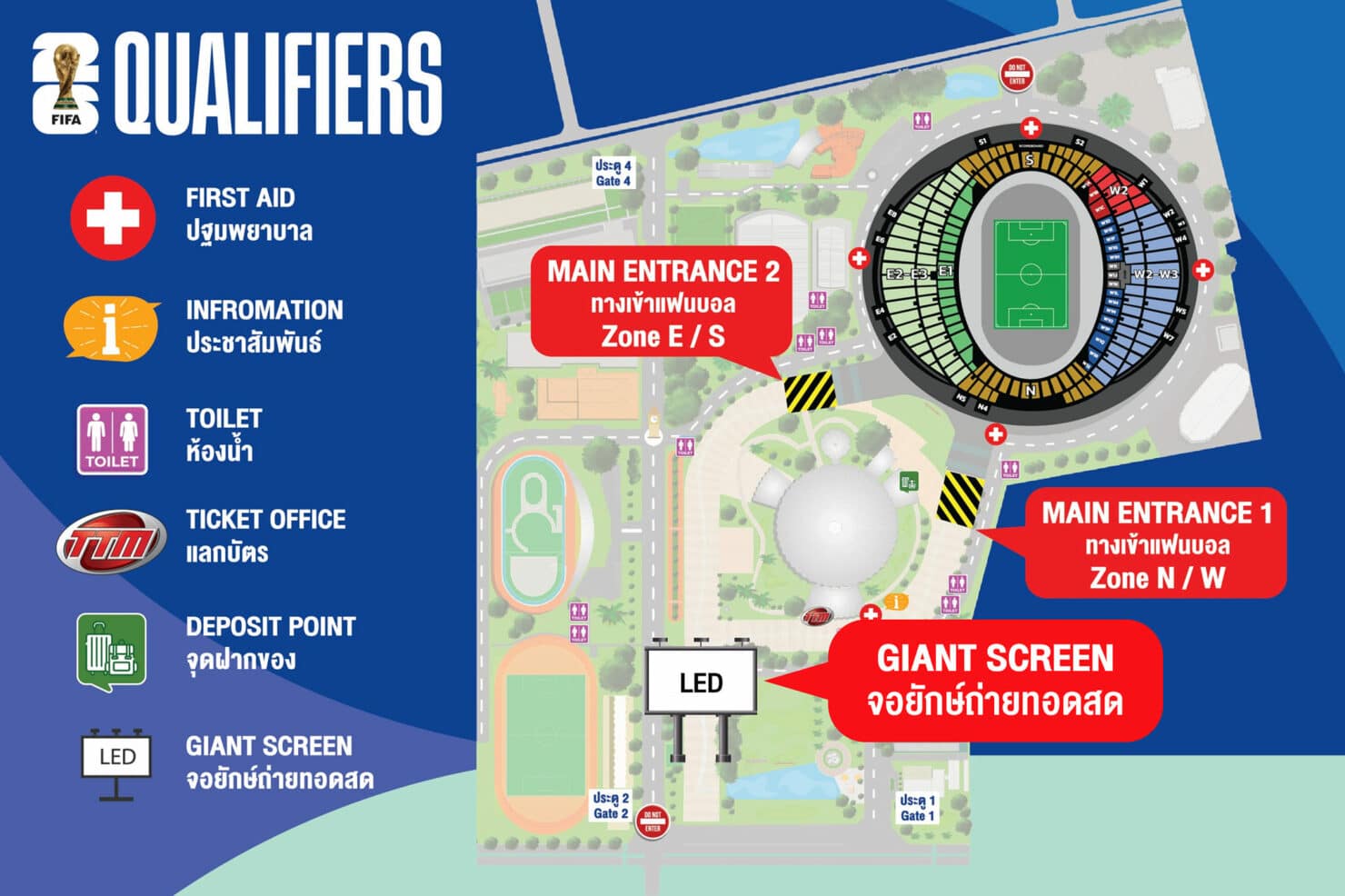 สมาคมกีฬาฟุตบอลฯ จัดการอำนวยความสะดวกแฟนบอลชาวไทย ที่เตรียมเดินทางมาชมแมตช์ ฟุตบอลโลก 2026 รอบคัดเลือก โซนเอเชีย รอบสอง นัดที่สี่ ระหว่าง ทีมชาติไทย พบ ทีมชาติเกาหลีใต้ เมื่อจัดการเปิดทางเข้าสนามราชมังคลากีฬาสถาน เพิ่ม 2 เท่า ในช่องทางเข้า Main entrance 2 บริเวณด้านสระว่ายน้ำอีก 15 ช่อง รวมกับด้านหน้า เป็น 30 ช่องทาง เพื่ออำนวยความสะดวกแฟนบอล
