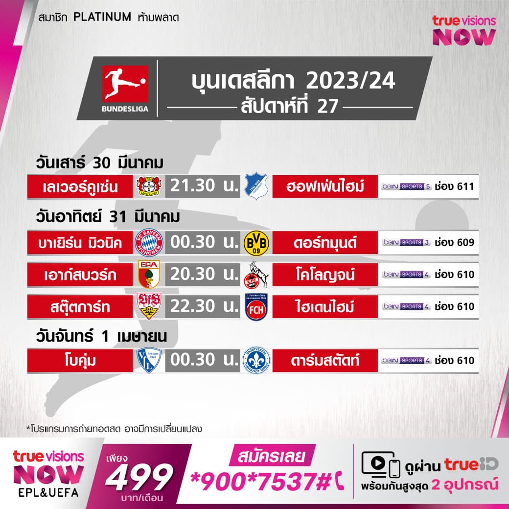 - 00:30 บาเยิร์น พบ ดอร์ทมุนด์ beIN Sport 3 / PPTV