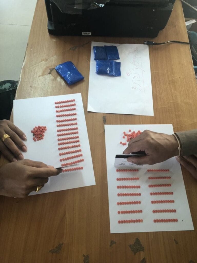 จากนั้น พบยาบ้า บรรจุอยู่ในถุงพลาสติก สีน้ำเงิน จำนวน 10 ถุง พันด้วย สก็อตเทปสีเหลือง จำนวน 3 มัด ซุกซ่อนไว้ในคอนโทรนหน้า ซึ่งอยู่ใต้เครื่องเสียง โดยอยู่หน้ากระปุกเกียร์ ของรถยนต์เก๋งคันดังกล่าว โดยภายในรถได้มี นายวัชระ รัตนพงศ์ นั่งมาด้วย จึงได้ควบคุมตัวทั้ง 2 คนมาสอบสวนที่สภ.ท่าฉัตรไชย