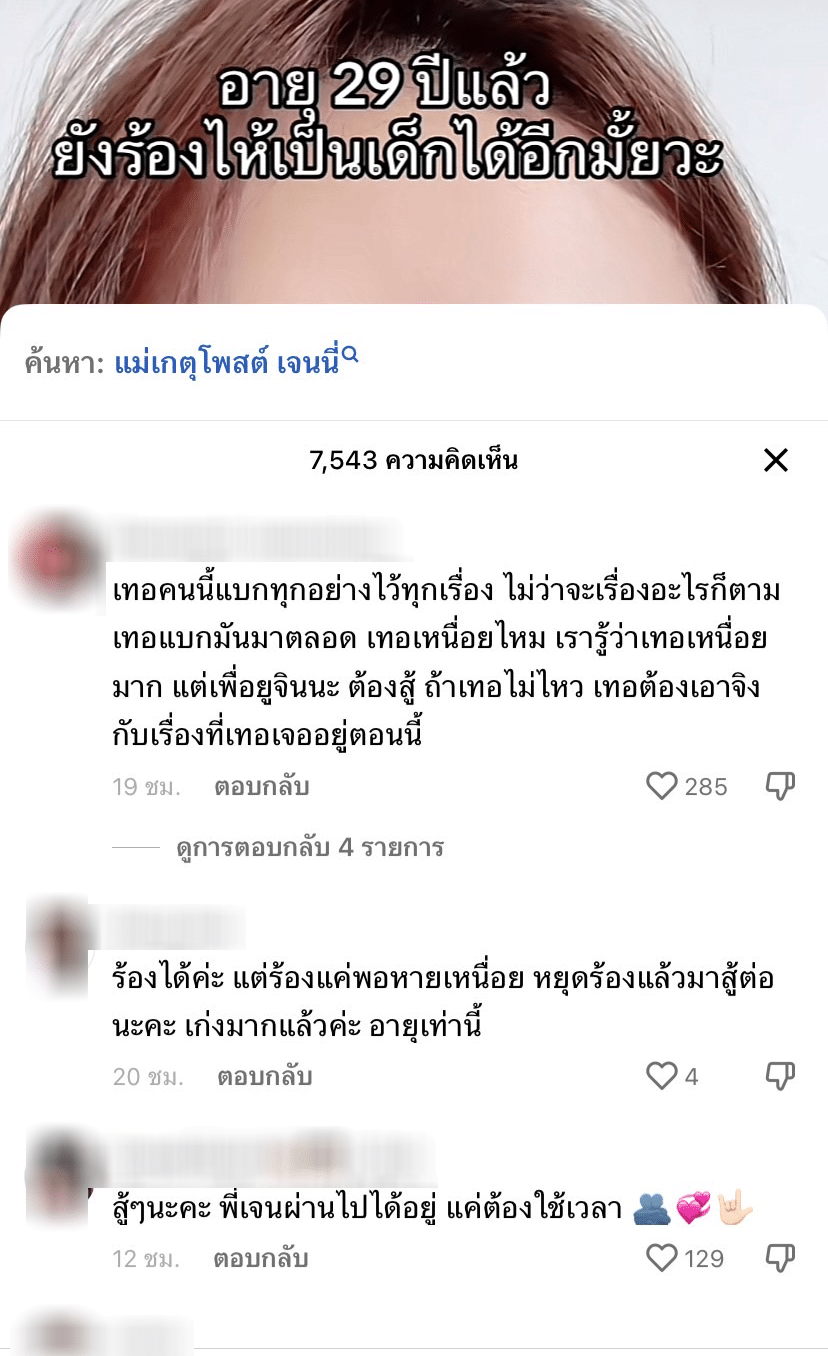 ทว่าขณะที่ไลฟ์ขายของเธอคงยากที่จะเก็บทุกความรู้สึกเอาไว้ กระทั่งร้องไห้ออกมาในระหว่างขายของ และหลังจากลงไลฟ์เจนนี่ก็โพสต์คลิปตัวเองร้องไห้ โดยได้พิมพ์ข้อความประกอบเอาไว้ในคลิปว่า “อายุ 29 ปี ยังร้องไห้เป็นเด็กได้อีกมั้ยวะ” พร้อมใส่เพลงประกอบชื่อเพลงว่า โลกที่แบกไว้ ของ มนัสวีร์ ด้วย