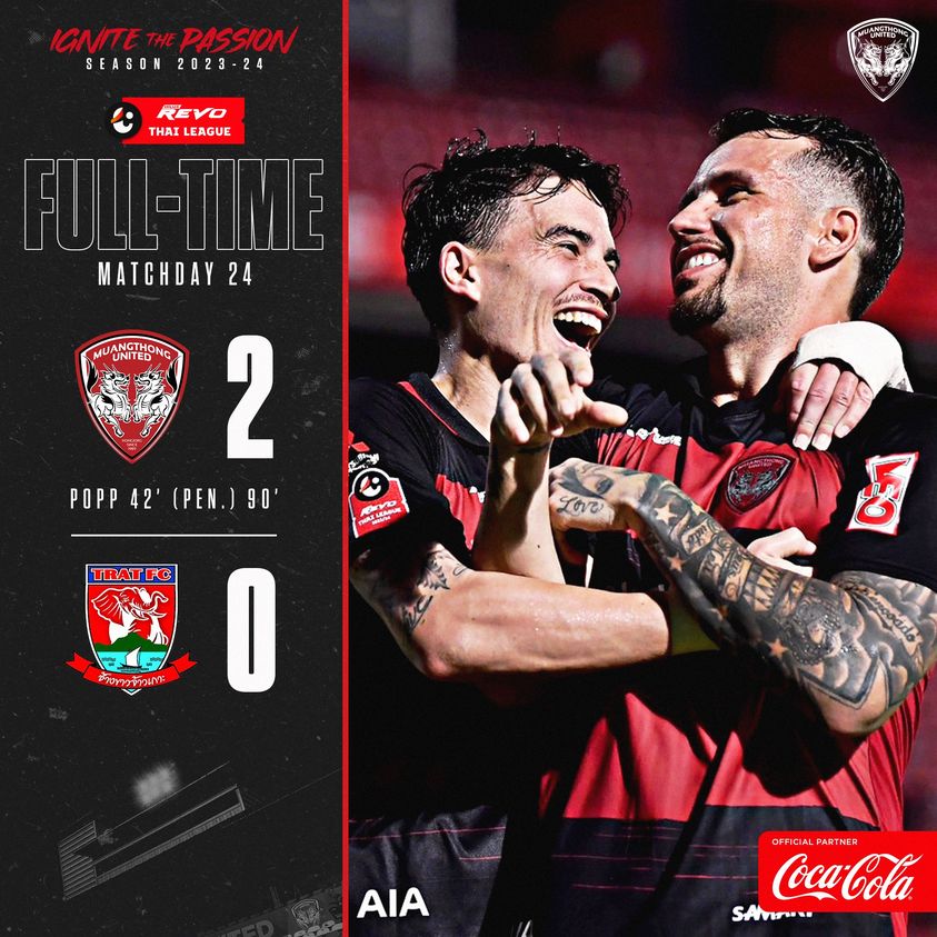 ผลบอลล่าสุด ฟุตบอล รีโว่ ไทยลีก 2023/24 เมืองทอง ยูไนเต็ด 2-0 ตราด เอฟซี นัดที่ 24 ของฤดูกาล : เมืองทอง ฟอร์มร้อนแรง เปิดบ้านเอาชนะ ตราด ในศึกไทยลีกคืนวันเสาร์ที่ผ่านมา