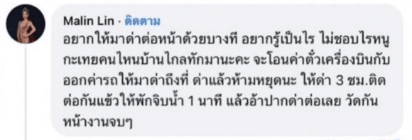 หลิน มาลิน มิสแกรนด์ไทยแลนด์ 2024 ฟาดกลับชาวเน็ตปากแจ๋ว คอมเมนต์วิจารณ์ไม่นำพา ลั่นแรง อยากให้ด่าต่อหน้า หากบ้านไกล พร้อมโอนค่าตั๋วเครื่องบินให้