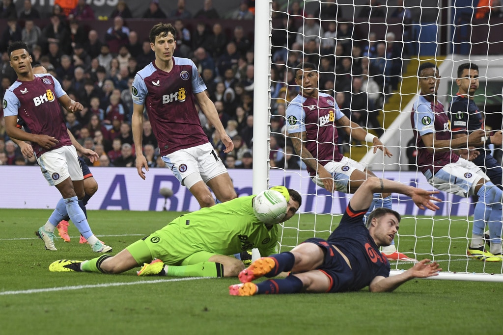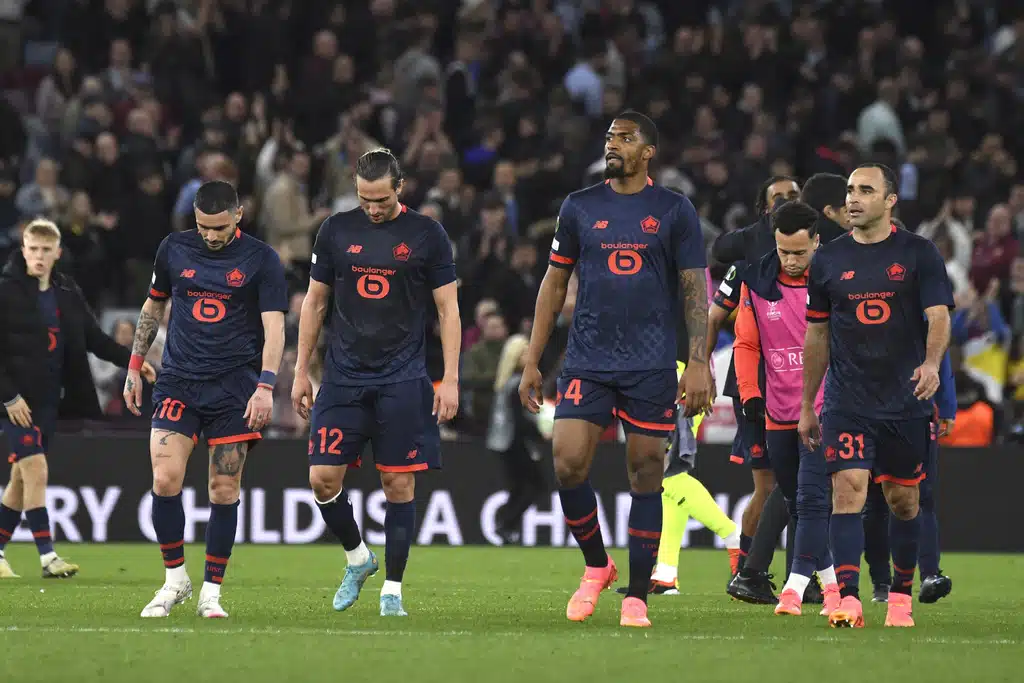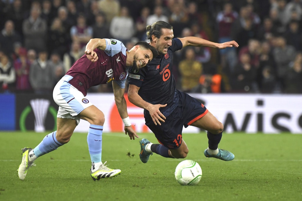 Lille’s Benjamin Andre, centre, gestures during the Europa Conference League quarter final first leg soccer match between Aston Villa and Lille at Villa Park in Birmingham, England, Thursday, April 11, 2024. (AP Photo/Rui Vieira)Lille players react disappointed after the Europa Conference League quarter final first leg soccer match between Aston Villa and Lille at Villa Park in Birmingham, England, Thursday, April 11, 2024. (AP Photo/Rui Vieira)Aston Villa’s Alex Moreno, left, challenges for the ball with Lille’s Yusuf Yazici during the Europa Conference League quarter final first leg soccer match between Aston Villa and Lille at Villa Park in Birmingham, England, Thursday, April 11, 2024. (AP Photo/Rui Vieira)Lille’s Bafode Diakite, second left, celebrates after scoring his side’s opening goal during the Europa Conference League quarter final first leg soccer match between Aston Villa and Lille at Villa Park in Birmingham, England, Thursday, April 11, 2024. (AP Photo/Rui Vieira)Aston Villa’s Ollie Watkins, right, celebrates after scoring his side’s opening goal during the Europa Conference League quarter final first leg soccer match between Aston Villa and Lille at Villa Park in Birmingham, England, Thursday, April 11, 2024. (AP Photo/Rui Vieira)Lille’s Gabriel Gudmundsson, bottom right, failed to score past Aston Villa’s goalkeeper Emiliano Martinez during the Europa Conference League quarter final first leg soccer match between Aston Villa and Lille at Villa Park in Birmingham, England, Thursday, April 11, 2024. (AP Photo/Rui Vieira)Aston Villa’s head coach Unai Emery reacts during the Europa Conference League quarter final first leg soccer match between Aston Villa and Lille at Villa Park in Birmingham, England, Thursday, April 11, 2024. (AP Photo/Rui Vieira)Aston Villa players celebrate after Aston Villa’s John McGinn scored his side’s second goal during the Europa Conference League quarter final first leg soccer match between Aston Villa and Lille at Villa Park in Birmingham, England, Thursday, April 11, 2024. (AP Photo/Rui Vieira)Referee Espen Eskas shows a yellow card to Aston Villa’s Douglas Luiz during the Europa Conference League quarter final first leg soccer match between Aston Villa and Lille at Villa Park in Birmingham, England, Thursday, April 11, 2024. (AP Photo/Rui Vieira)Aston Villa’s Morgan Rogers, left, challenges for the ball with Lille’s Benjamin Andre during the Europa Conference League quarter final first leg soccer match between Aston Villa and Lille at Villa Park in Birmingham, England, Thursday, April 11, 2024. (AP Photo/Rui Vieira)