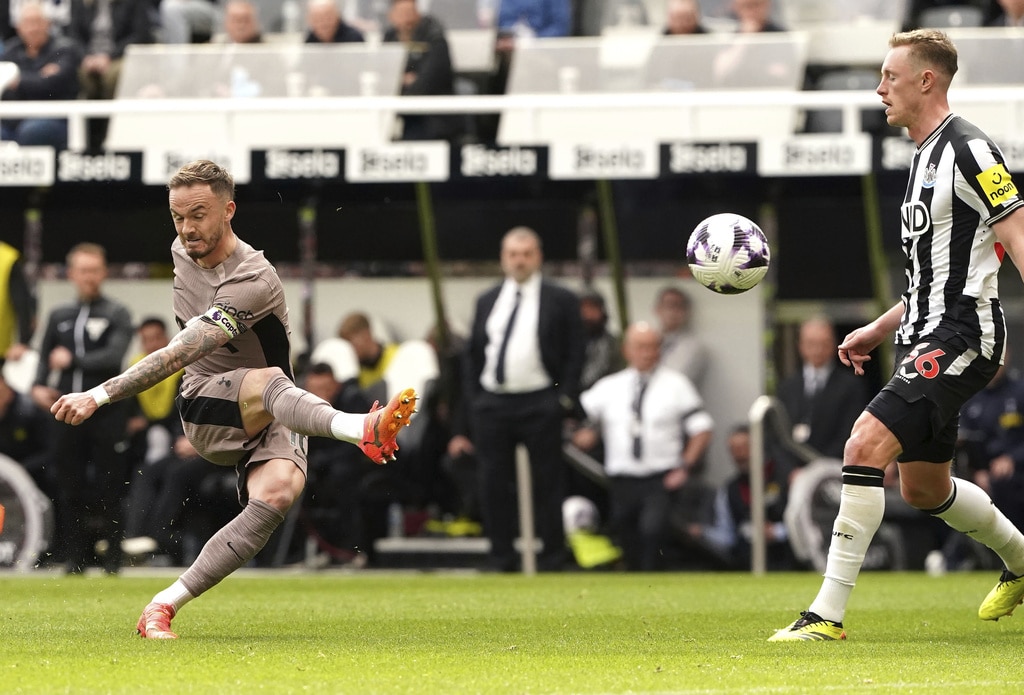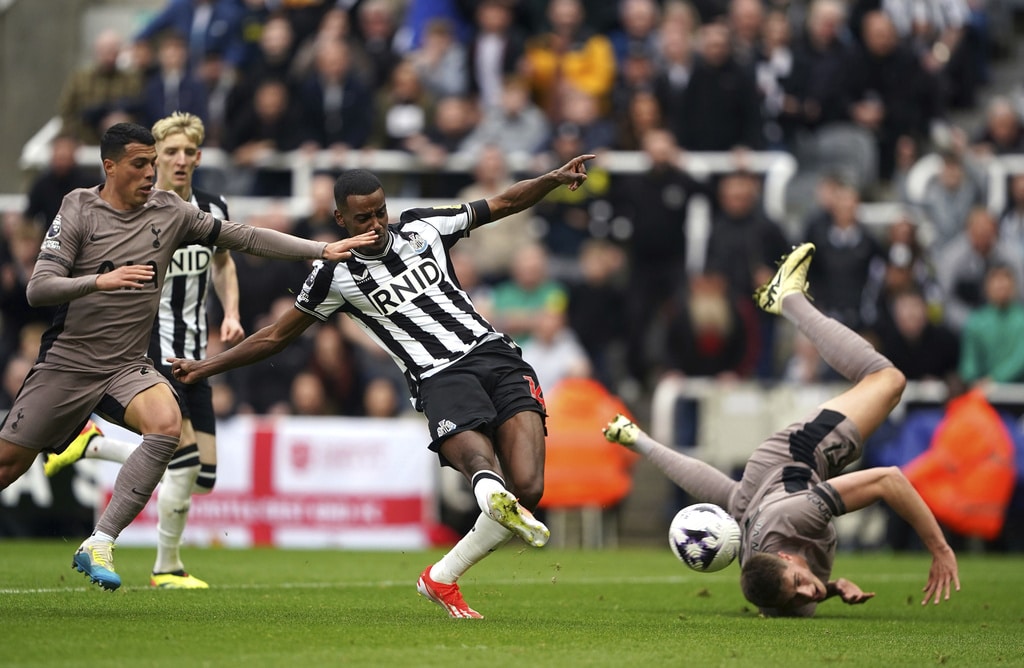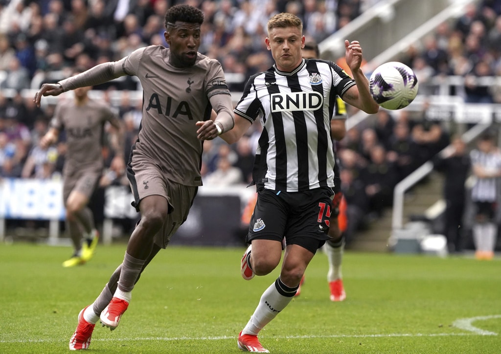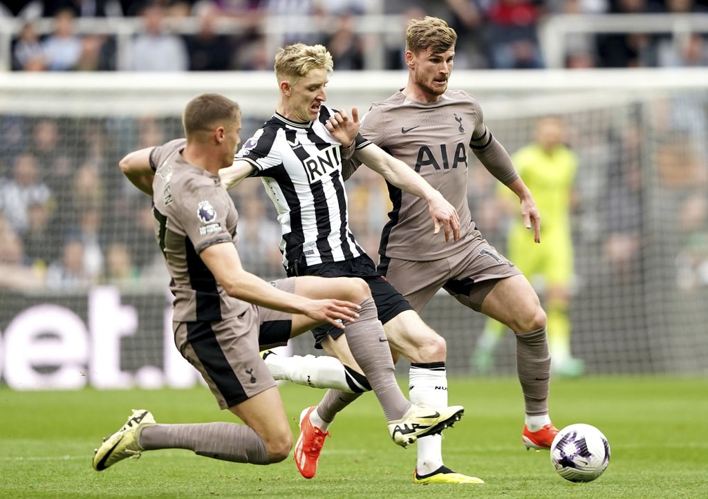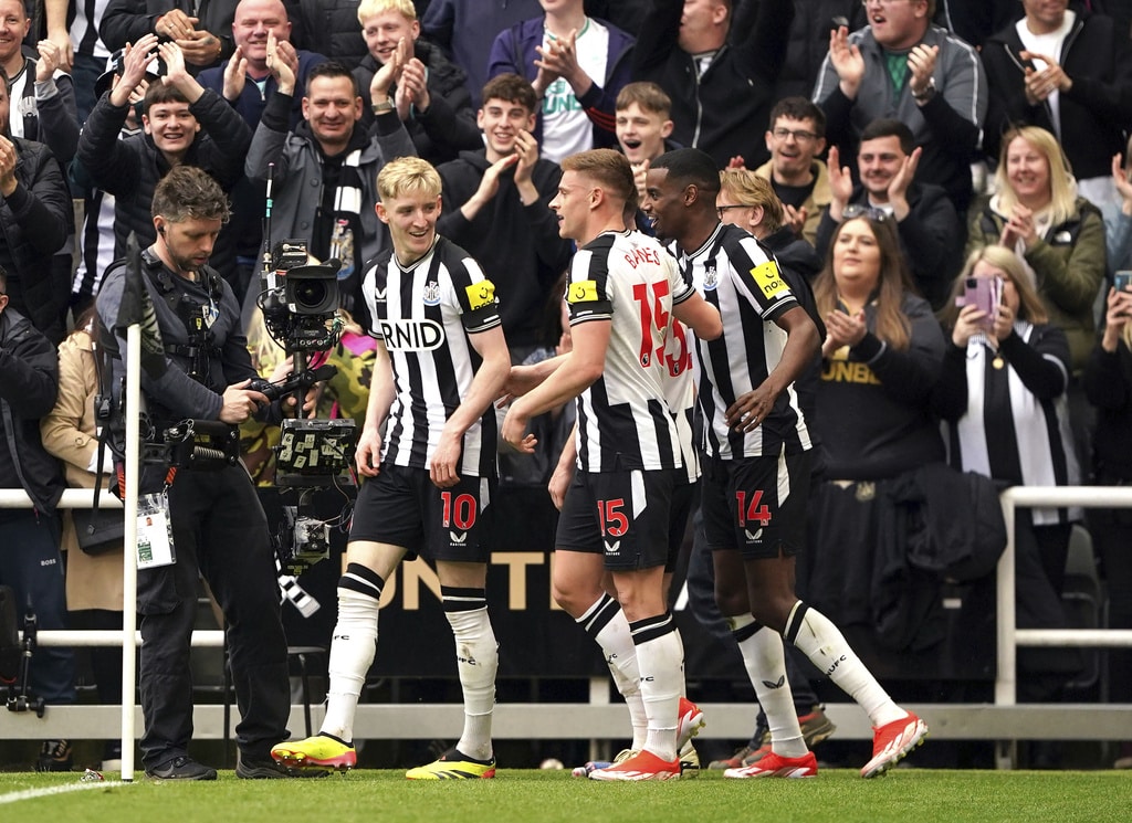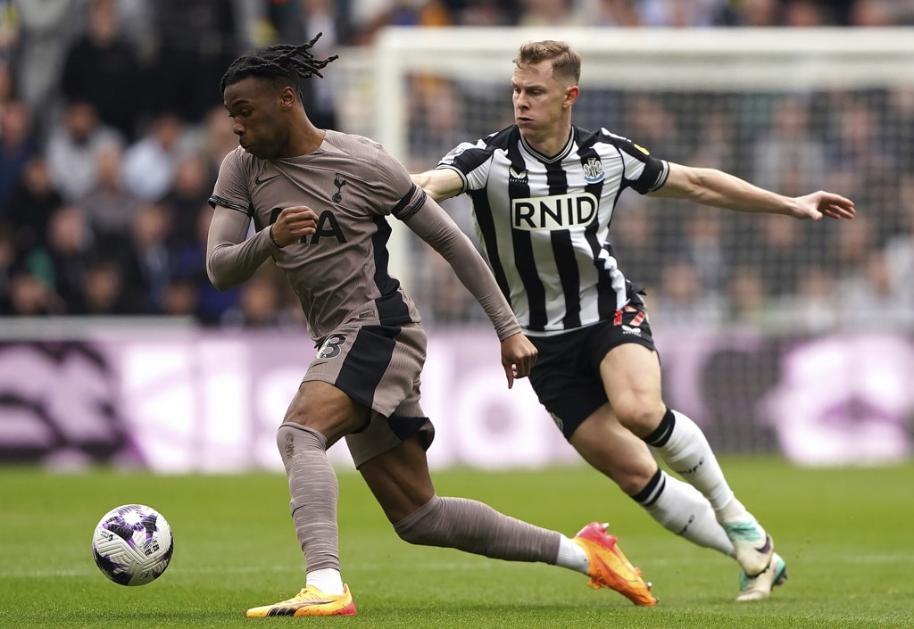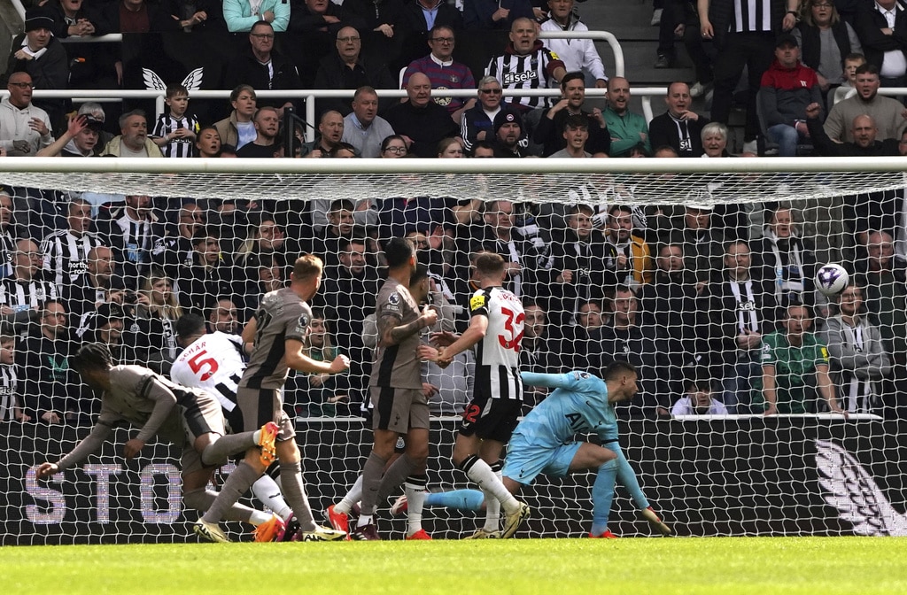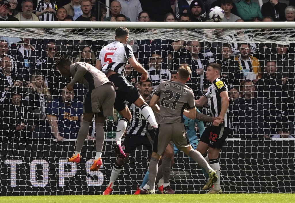 Tottenham Hotspur’s Destiny Udogie, left, and Newcastle United’s Emil Krafth challenge for the ball during the English Premier League soccer match between Newcastle United and Tottenham Hotspur at St. James’ Park in Newcastle, England, Saturday, April 13, 2024. (Owen Humphreys/PA via AP)Tottenham Hotspur’s Emerson, left, and Newcastle United’s Harvey Barnes challenge for the ball during the English Premier League soccer match between Newcastle United and Tottenham Hotspur at St. James’ Park in Newcastle, England, Saturday, April 13, 2024. (Owen Humphreys/PA via AP)Newcastle United’s Fabian Schar, second from left, scores their side’s fourth goal during the English Premier League soccer match between Newcastle United and Tottenham Hotspur at St. James’ Park in Newcastle, England, Saturday, April 13, 2024. (Owen Humphreys/PA via AP)Newcastle United’s Fabian Schar, centre top, scores their side’s fourth goal during the English Premier League soccer match between Newcastle United and Tottenham Hotspur at St. James’ Park in Newcastle, England, Saturday, April 13, 2024. (Owen Humphreys/PA via AP)Tottenham Hotspur’s James Maddison, left, shoots the ball during the English Premier League soccer match between Newcastle United and Tottenham Hotspur at St. James’ Park in Newcastle, England, Saturday, April 13, 2024. (Owen Humphreys/PA via AP)Newcastle United’s Anthony Gordon, left, celebrates with teammates after scoring their side’s second goal during the English Premier League soccer match between Newcastle United and Tottenham Hotspur at St. James’ Park in Newcastle, England, Saturday, April 13, 2024. (Owen Humphreys/PA via AP)Newcastle United’s Alexander Isak, centre, scores the opening goal during the English Premier League soccer match between Newcastle United and Tottenham Hotspur at St. James’ Park in Newcastle, England, Saturday, April 13, 2024. (Owen Humphreys/PA via AP)Tottenham Hotspur’s Micky van de Ven, left, challenges for the ball with Newcastle United’s Anthony Gordon, centre, during the English Premier League soccer match between Newcastle United and Tottenham Hotspur at St. James’ Park in Newcastle, England, Saturday, April 13, 2024. (Owen Humphreys/PA via AP)Newcastle United’s Harvey Barnes, centre right, shoots the ball during the English Premier League soccer match between Newcastle United and Tottenham Hotspur at St. James’ Park in Newcastle, England, Saturday, April 13, 2024. (Owen Humphreys/PA via AP)