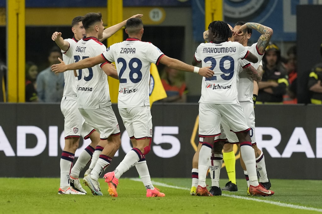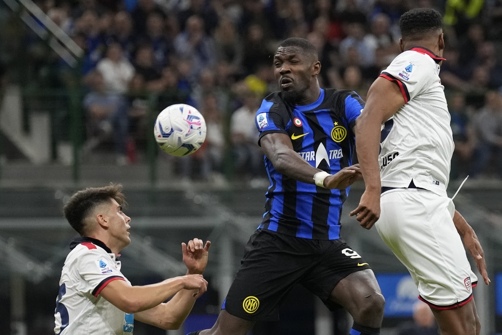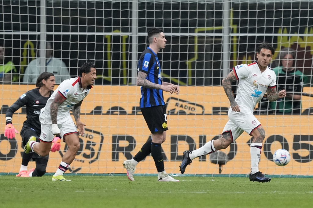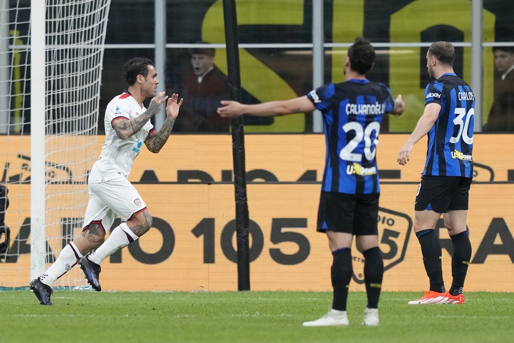 Cagliari’s Ibrahim Sulemana, right, is challenged by Inter Milan’s Hakan Calhanoglu during the Italian Serie A soccer match between Inter Milan and Cagliari at the San Siro stadium in Milan, Italy, Sunday, April 14, 2024. (AP Photo/Antonio Calanni)Inter Milan’s Alexis Sanchez, right, heads the ball during the Italian Serie A soccer match between Inter Milan and Cagliari at the San Siro stadium in Milan, Italy, Sunday, April 14, 2024. (AP Photo/Antonio Calanni)Cagliari’s Nicolas Viola, right, celebrates after scoring his side’s second goal during the Italian Serie A soccer match between Inter Milan and Cagliari at the San Siro stadium in Milan, Italy, Sunday, April 14, 2024. (AP Photo/Antonio Calanni)Cagliari’s Nicolas Viola, left, celebrates after scoring his side’s second goal during the Italian Serie A soccer match between Inter Milan and Cagliari at the San Siro stadium in Milan, Italy, Sunday, April 14, 2024. (AP Photo/Antonio Calanni)Cagliari’s Nicolas Viola, right, celebrates after scoring his side’s second goal during the Italian Serie A soccer match between Inter Milan and Cagliari at the San Siro stadium in Milan, Italy, Sunday, April 14, 2024. (AP Photo/Antonio Calanni)Inter Milan’s Marcus Thuram, centre, jumps for a header with Cagliari’s Adam Obert, left and Cagliari’s Yerry Mina during the Italian Serie A soccer match between Inter Milan and Cagliari at the San Siro stadium in Milan, Italy, Sunday, April 14, 2024. (AP Photo/Antonio Calanni)Inter Milan’s Alexis Sanchez reacts after a missed chance during the Italian Serie A soccer match between Inter Milan and Cagliari at the San Siro stadium in Milan, Italy, Sunday, April 14, 2024. (AP Photo/Antonio Calanni)Inter Milan’s Alexis Sanchez, right, heads the ball during the Italian Serie A soccer match between Inter Milan and Cagliari at the San Siro stadium in Milan, Italy, Sunday, April 14, 2024. (AP Photo/Antonio Calanni)Cagliari players celebrate after Eldor Shomurodov scored his side’s opening goal during the Italian Serie A soccer match between Inter Milan and Cagliari at the San Siro stadium in Milan, Italy, Sunday, April 14, 2024. (AP Photo/Antonio Calanni)Inter Milan’s Nicolo Barella, right, is challenged by Cagliari’s Pantelis Chatzidiakos during the Italian Serie A soccer match between Inter Milan and Cagliari at the San Siro stadium in Milan, Italy, Sunday, April 14, 2024. (AP Photo/Antonio Calanni)