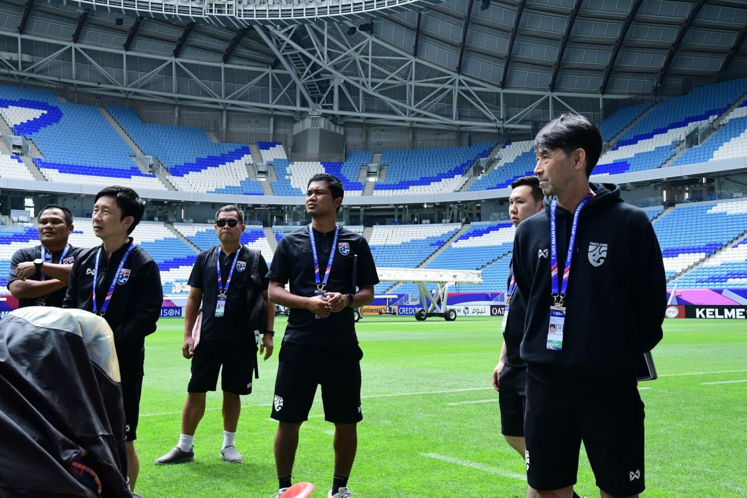 อิสสระ ศรีทะโร หัวหน้าผู้ฝึกสอนทีมชาติไทย U23 และ มาซาทาดะ อิชิอิ ที่ปรึกษาทีม พร้อมทีมงานสตาฟฟ์โค้ช ตรวจสภาพความพร้อมของ อัล ยานูบ สเตเดียม สนามที่ ทีมชาติไทย U-23 จะทำการแข่งขัน AFC U23 Asian Cup 2024 นัดแรกที่จะพบกับ อิรัก ในวันที่ 16 เมษายนนี้ ถ่ายทอดสดทาง ทรูวิชั่นส์ True Sport 2 ช่อง 667