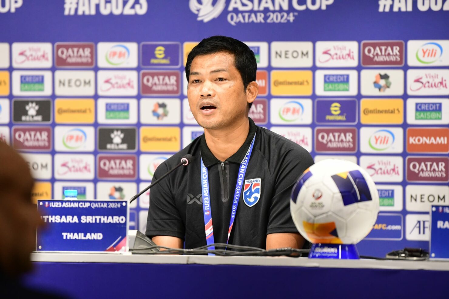 “อิสสระ ศรีทะโร” เข้าร่วมการแถลงข่าวก่อนการแข่งขัน AFC U23 Asian Cup QATAR 2024 กลุ่มซี