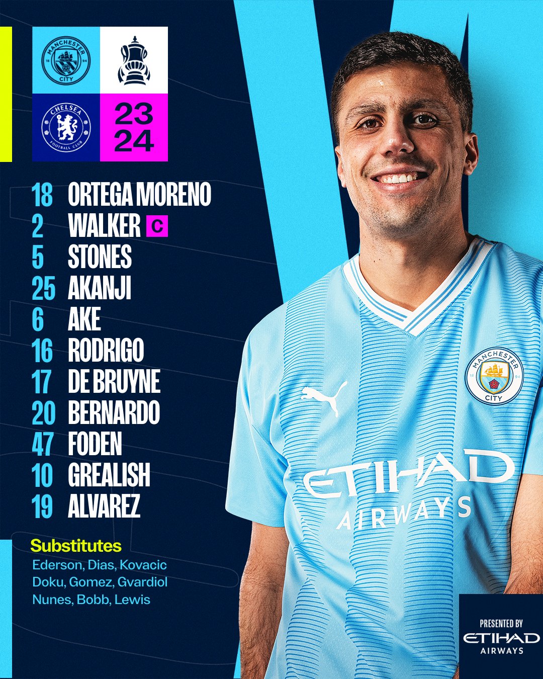 20 เมษายน 2567 รายชื่อผู้เล่น 11 ตัวจริง แมนซิตี้ พบ เชลซี ศึกฟุตบอล เอฟเอ คัพ อังกฤษ ฤดูกาล 2023-24 รอบ 4 ทีมสุดท้าย หรือรอบรองชนะเลิศ คืนนี้ ลิงก์ถูกลิขสิทธิ์ ดูบอลสดออนไลน์ ทาง beIN Sports เวลา 23:15 น.
