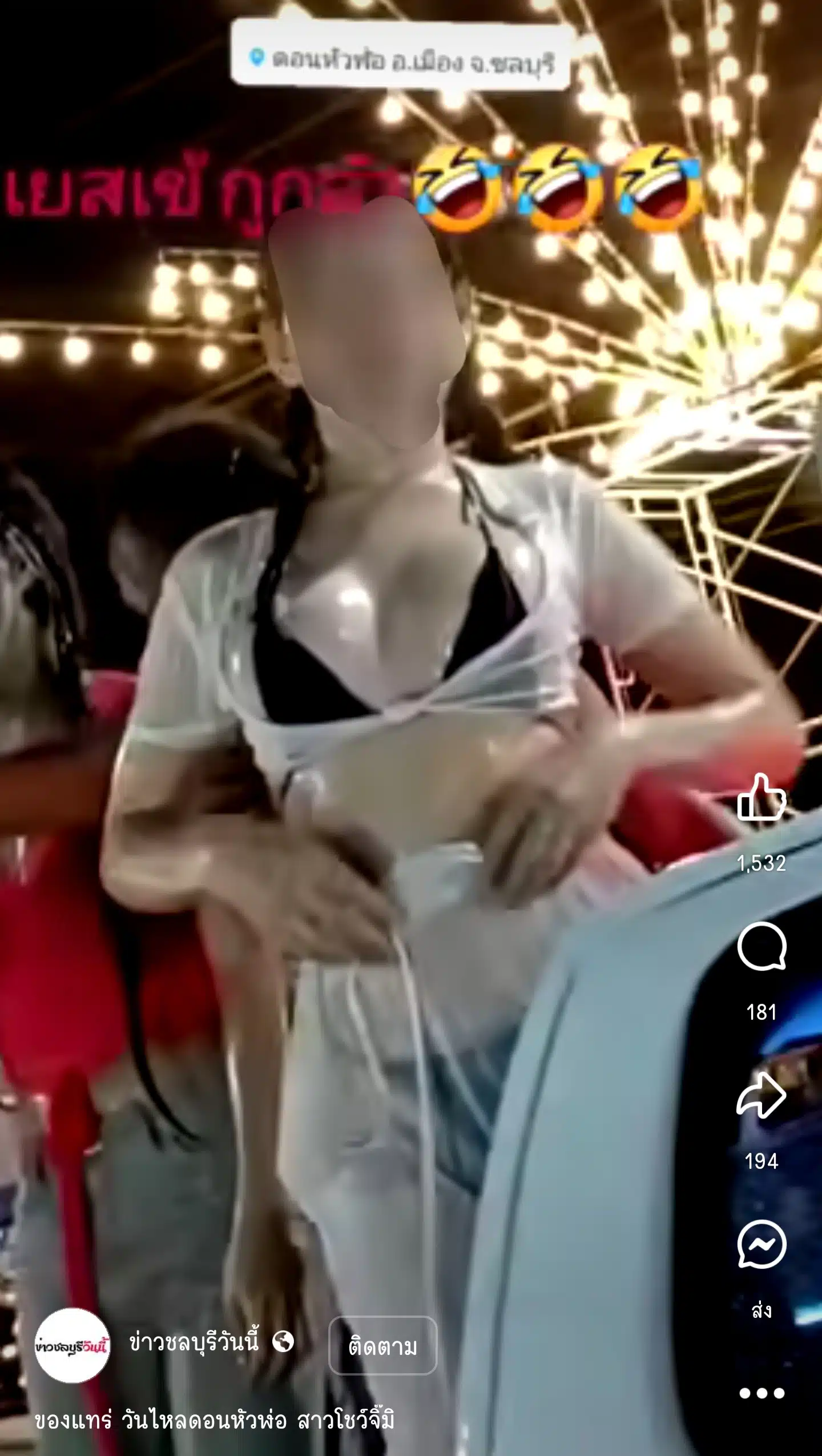 คลิปดังกล่าวเผยแพร่ผ่านเฟซบุ๊ก “ข่าวชลบุรีวันนี้” เป็นเหตุการณ์ตอนที่ชายเจ้าของคลิปนั่งอยู่ในรถยนต์ ขับสวนกับรถกระบะคันหนึ่ง ในงานวันไหลดอนหัวฬ่อ จังหวัดชลบุรี บนท้ายกระบะมีสาวๆ ยืนเล่นน้ำอย่างสนุกสนานอยู่หลายคน หนึ่งในนั้นสะดุดตาด้วยการนุ่งเสื้อผ้าสีขาวเปียกน้ำจนทะลุเห็นบิกินี่สีดำด้านใน