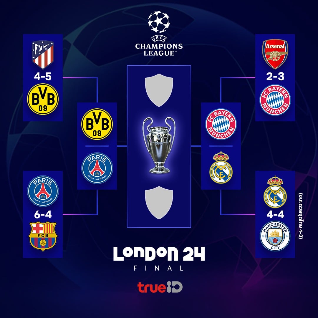 สรุปทีมที่เข้ารอบ 4 ทีมสุดท้าย หรือรอบรองชนะเลิศ ยูฟ่า แชมเปี้ยนส์ลีก 2023/24 พร้อมวันแข่งขัน