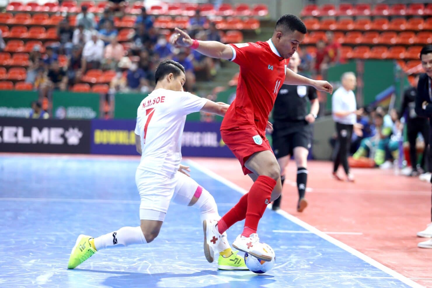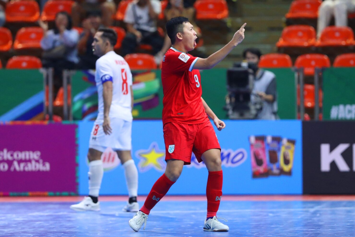 น.35 ปาณัสม์ กิตติภานุวงศ์ ซัดมุมแคบที่ริมขวาแบบสุดสวยช่วยให้ ฟุตซอลไทย นำห่าง 4-0