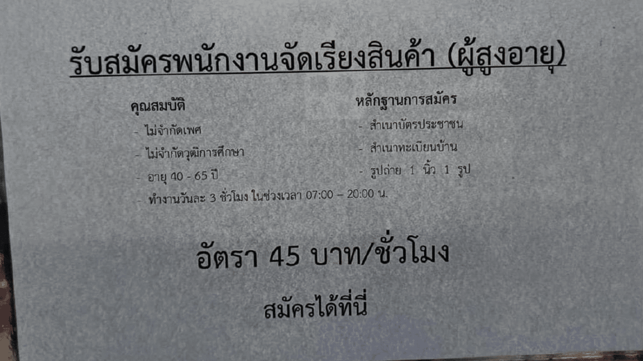 ก่อนหน้านี้ได้เป็นกระแสฮือฮาบนโลกโซเชียลมีเดีย เมื่อร้านสะวกซื้อเจ้าดังได้เปิดรับสมัครงานจัดเรียงสินค้า (ผู้สูงอายุ) โดยมีคุณสมบัติเป็นผู้ที่มีอายุ 40-65 ปี