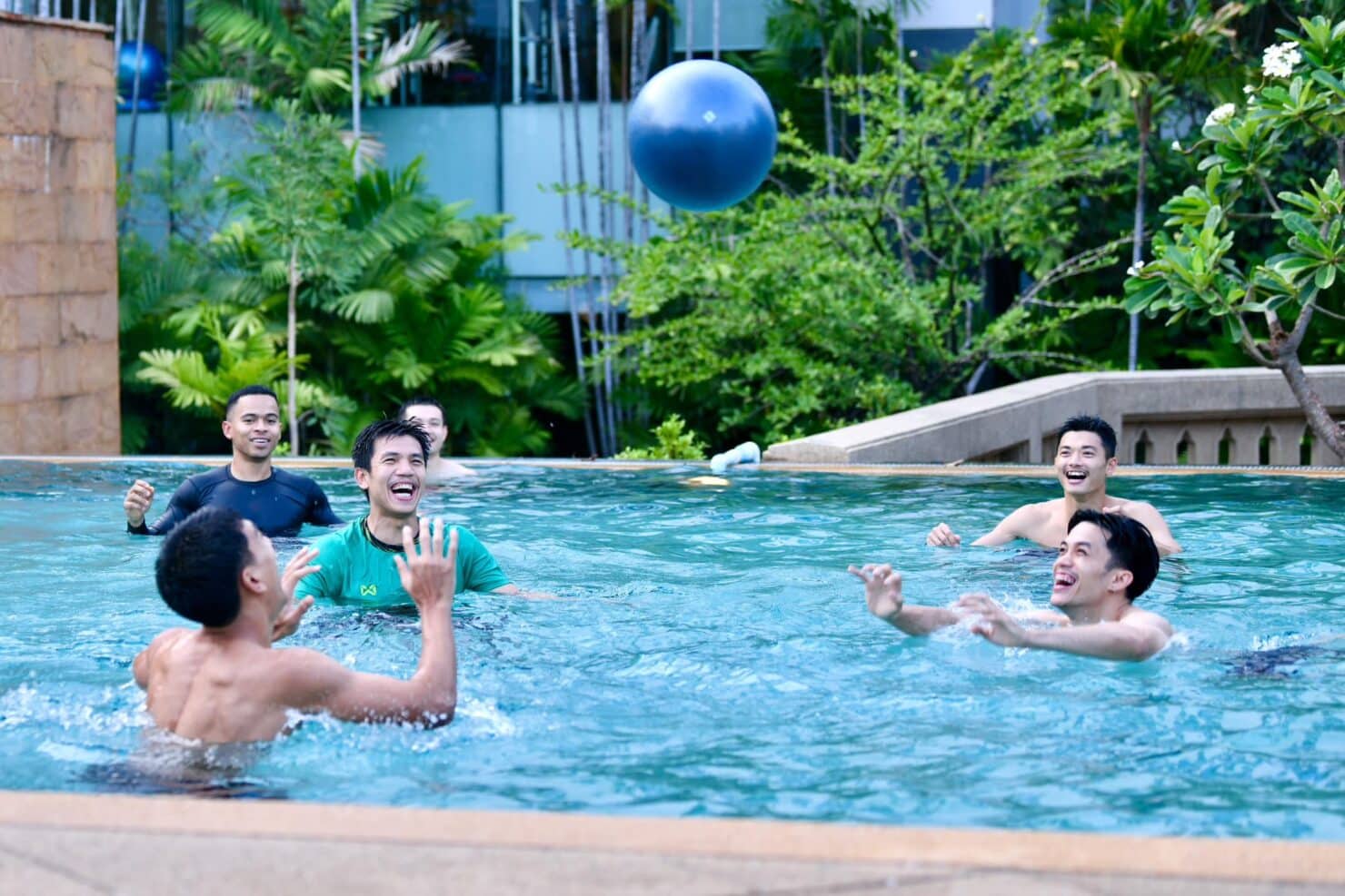 วันที่ 22 เมษายน 2567 เวลา 17.30 น. ที่ สระว่ายน้ำโรงแรมดุสิตปริ๊นเซส กรุงเทพฯ ทีม ฟุตซอลทีมชาติไทย ฟื้นฟูร่างกาย เพื่อเตรียมความก่อนทำศึกฟุตซอลชิงแชมป์ รอบ 8 ทีมสุดท้าย กับ ทีมชาติอิรัก