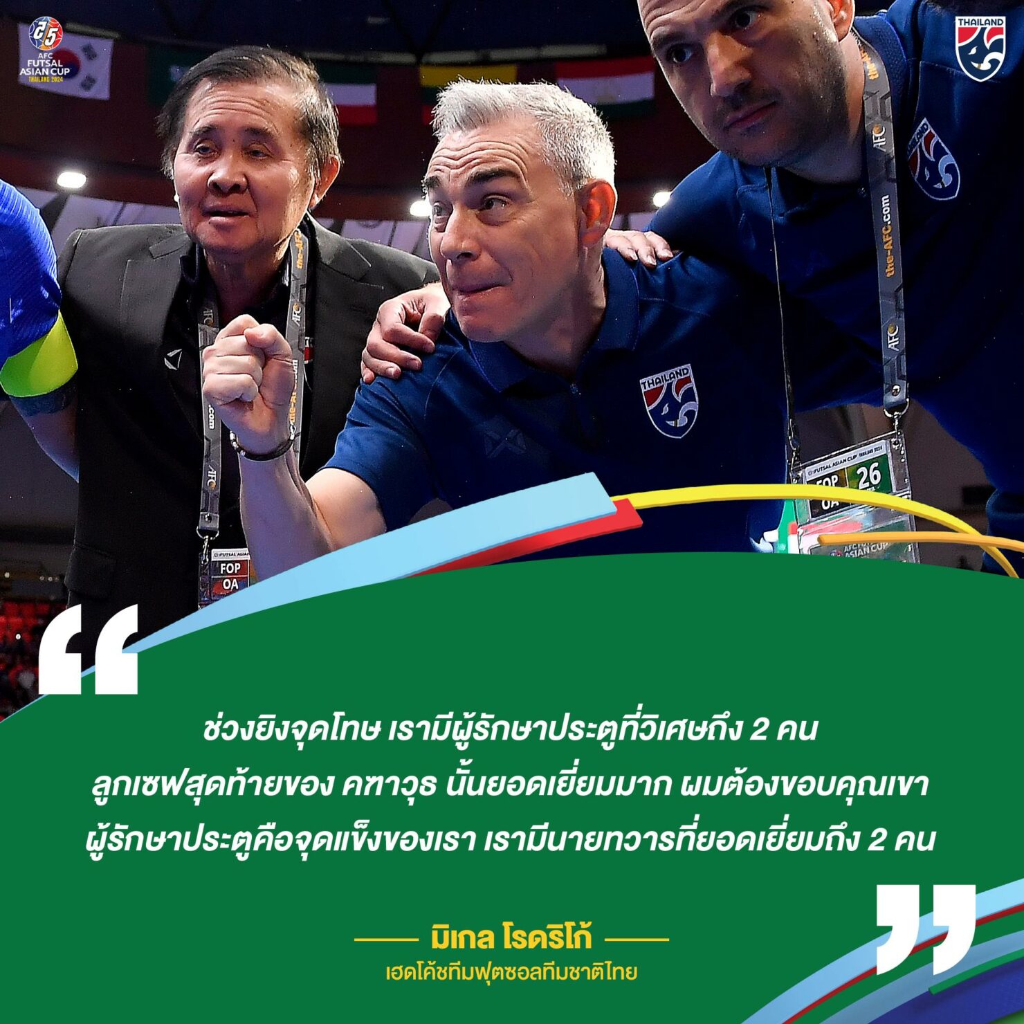 มิเกล โรดริโก้ เฮดโค้ชฟุตซอลทีมชาติไทย ได้กล่าวหลังจบเกมว่า “มันเป็นเกมที่มหัศจรรย์มาก เราสู้ไปด้วยกันทั้งทีม เราคัมแบ็คกลับมาได้อีกครั้ง”