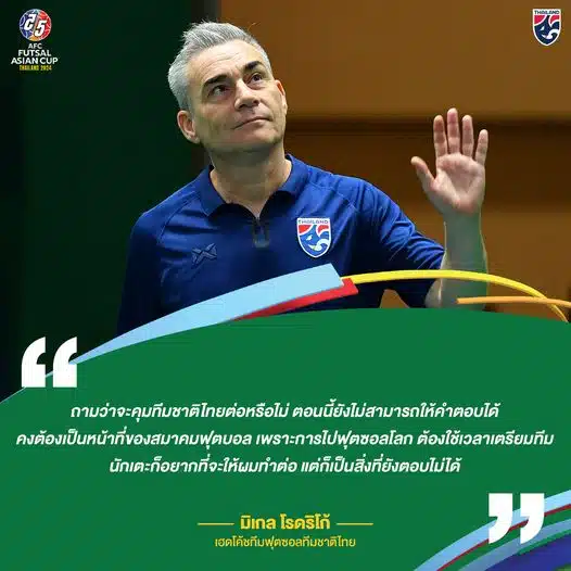 มิเกล โรดริโก้ ตอบไม่ได้ จะอยู่คุมทีมต่อใน ฟุตซอลโลก 2024 หรือไม่ รอให้ ส.บอลฯ เป็นฝ่ายตัดสินใจ