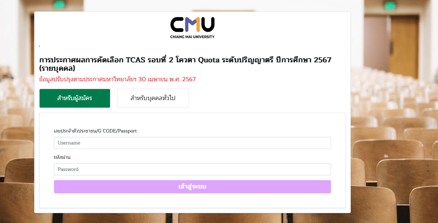 ทีมมช. ประกาศรายชื่อผู้ผ่านคัดเลือก TCAS รอบ 2 โควตา ปี 2567 มหาวิทยาลัยเชียงใหม่