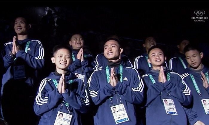 Thomas Bach ประธานกรรมการโอลิมปิกสากล ได้กล่าวในพิธีเปิดมีใจความตอนหนึ่งว่า “ความตั้งมั่นและความกล้าหาญของนักกีฬาผู้ยิ่งใหญ่ จะเป็นปัจจัยที่คอยช่วยเหลือสนับสนุนในทุกแง่มุมของชีวิต เราทุกคนคงจำได้ ว่ามีกลุ่มเยาว์ชนไทยผู้กล้าหาญกลุ่มหนึ่งติดอยู่ในถ้ำนานถึง 17 วัน นั่นก็คือสมาชิกทีมหมูป่าอะคาเดมี่ พวกเขาเป็นตัวแทนที่ทำให้เราได้เห็นถึงความสำคัญของความมุ่งมั่น กล้าหาญ จึงเป็นเหตุผลที่คณะกรรมการโอลิมปิกสากล เชิญทีมหมูป่าอะคาเดมี่มาร่วมแลกเปลี่ยนประสบการณ์กับนักกีฬาเยาว์ชนจากทั่วโลก และยินดีต้อนรับหมูป่า”