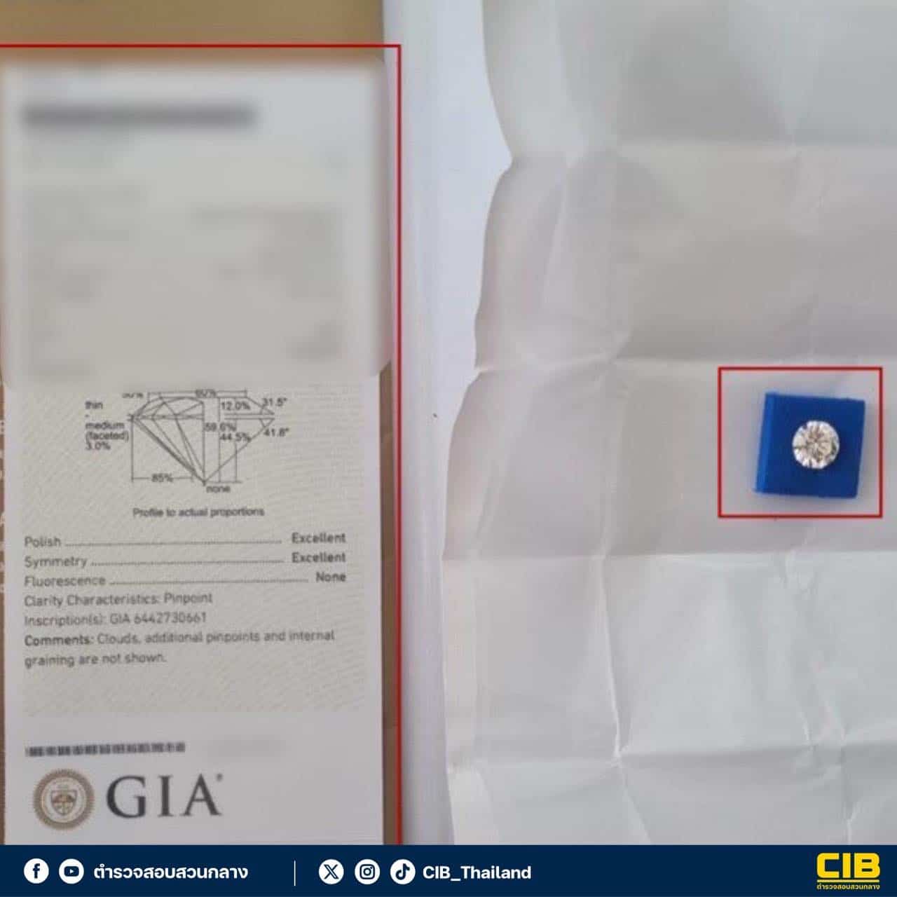 เจ้าหน้าที่สอบสวนกลาง หรือ CIB บุกรวบแก๊งโจรแสบสลับเพชร 3 กะรัต มูลค่า 2.2 ล้านบาท หลังออกอุบายขอดูเพชร ก่อนฉวยโอกาสก่อเหตุ