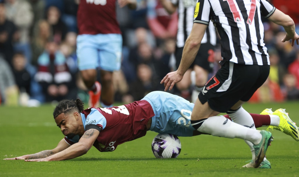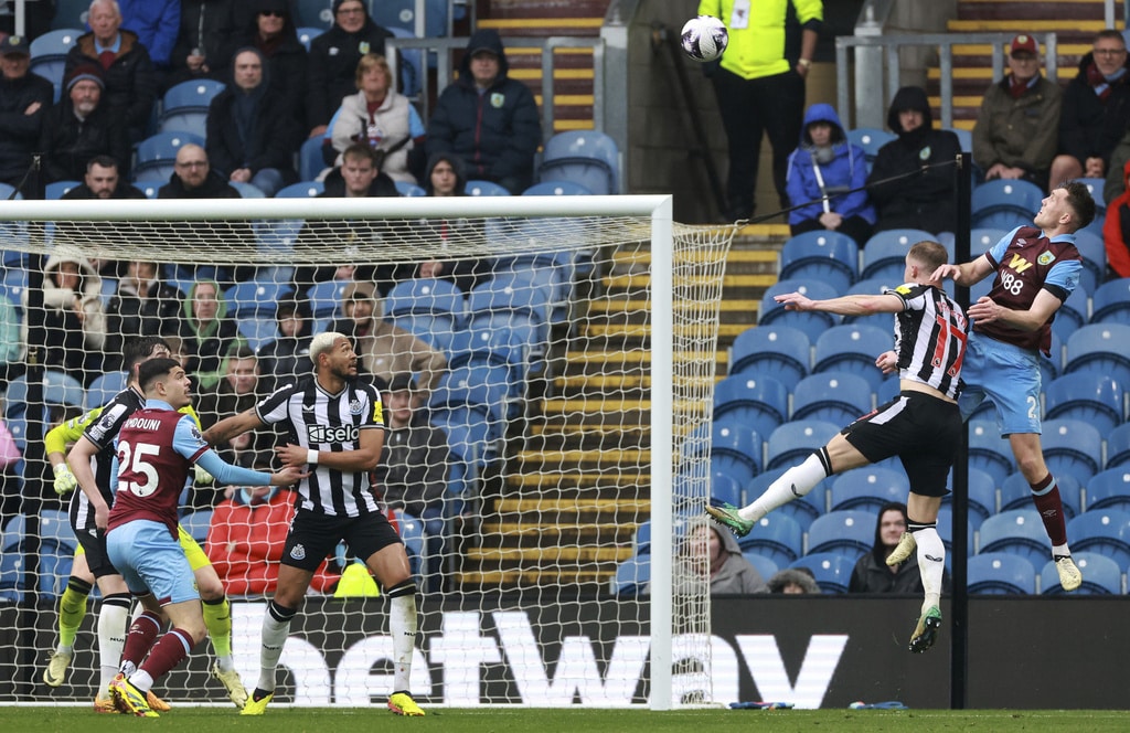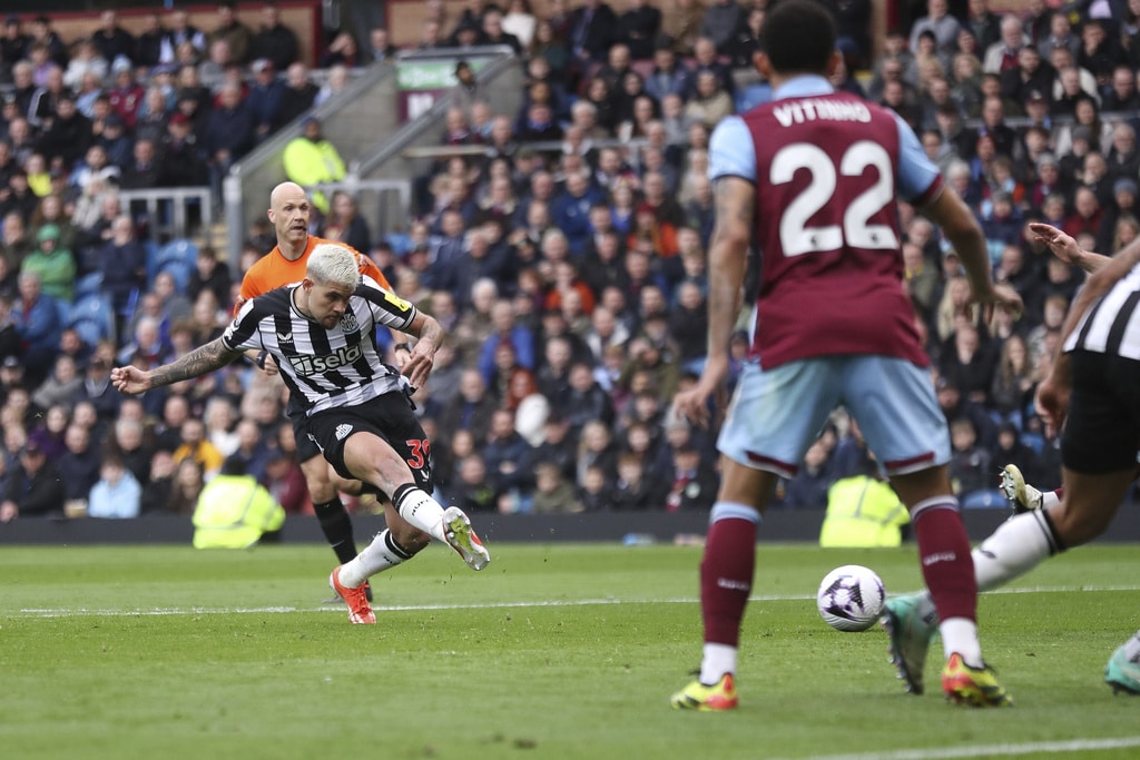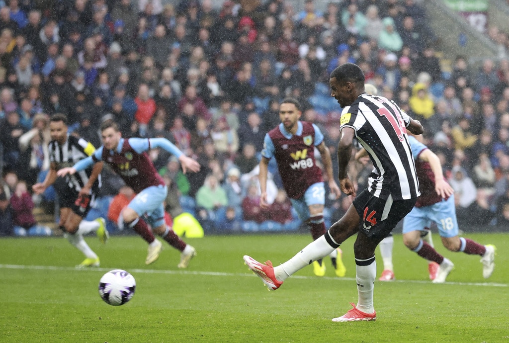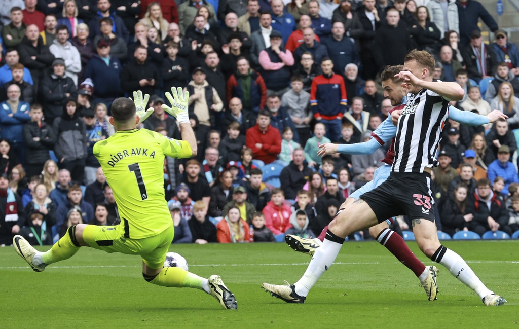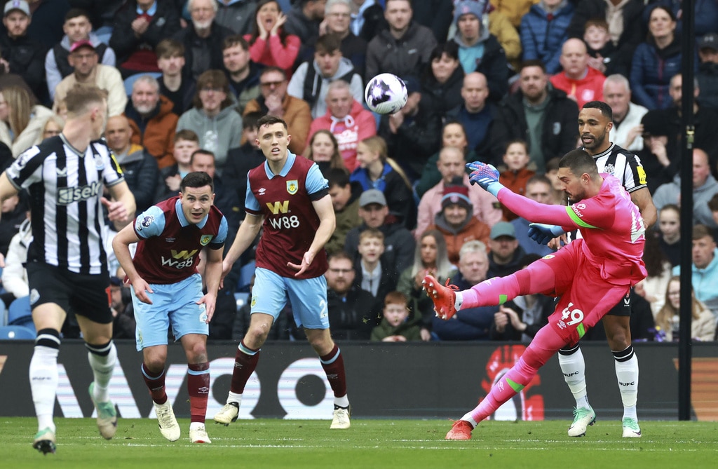Burnley’s Jacob Bruun Larsen, background right, attempts a shot on goal, during the English Premier League soccer match between Burnley and Newcastle United, at Turf Moor, in Burnley, England, Saturday, May 4, 2024. (Steve Welsh/PA via AP)Burnley’s Dara O’Shea scores his side’s first goal of the game, during the English Premier League soccer match between Burnley and Newcastle United, at Turf Moor, in Burnley, England, Saturday, May 4, 2024. (Steve Welsh/PA via AP)Burnley’s Dara O’Shea, left and Newcastle United’s Alexander Isak vie for the ball, during the English Premier League soccer match between Burnley and Newcastle United, at Turf Moor, in Burnley, England, Saturday, May 4, 2024. (Steve Welsh/PA via AP)Newcastle United’s Alexander Isak has a penalty saved, during the English Premier League soccer match between Burnley and Newcastle United, at Turf Moor, in Burnley, England, Saturday, May 4, 2024. (Steve Welsh/PA via AP)Burnley manager Vincent Kompany reacts on the touchline, during the English Premier League soccer match between Burnley and Newcastle United, at Turf Moor, in Burnley, England, Saturday, May 4, 2024. (Steve Welsh/PA via AP)Newcastle United’s Bruno Guimaraes, takes a shot on goal, during the English Premier League soccer match between Burnley and Newcastle United, at Turf Moor, in Burnley, England, Saturday, May 4, 2024. (Tim Marklan/PA via AP)Newcastle United’s Bruno Guimaraes, left and Burnley’s Josh Brownhill vie for the ball, during the English Premier League soccer match between Burnley and Newcastle United, at Turf Moor, in Burnley, England, Saturday, May 4, 2024. (Tim Marklan/PA via AP)Burnley goalkeeper Arijanet Muric, right. kicks the ball, during the English Premier League soccer match between Burnley and Newcastle United, at Turf Moor, in Burnley, England, Saturday, May 4, 2024. (Steve Welsh/PA via AP)Burnley’s Lorenz Assignon trips, during the English Premier League soccer match between Burnley and Newcastle United, at Turf Moor, in Burnley, England, Saturday, May 4, 2024. (Steve Welsh/PA via AP)