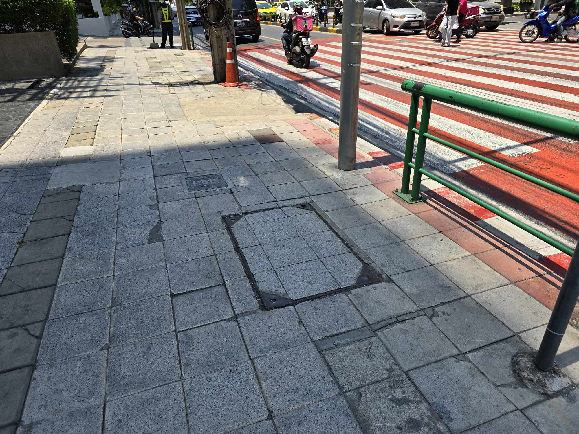 คนไทยเดินบนฟุตปาธ ยามเร่งรีบ สังเกตหลายคนก้มหน้าก้มตากดเล่นมือถือ บางคนจ้ำอ้าวมุ่งหน้าไปยังจุดหมาย โดยไม่ทันได้สังเกตสิ่งรอบตัว หนึ่งในสิ่งที่พบเจอบ่อยบนทางเท้าประเทศไทยคือ ตัวอิฐชำรุด และล่าสุดจากเหตุการณ์ชายตกท่อ 15 เมตร ที่ลาดพร้าว รถไฟฟ้าคูคต มีเพียงฝาท่อไม้อัดผุๆ ปิดไว้ ยิ่งทำให้เราต้อตระหนักว่า อันตรายอยู่ใกล้ตัวกว่าที่คิด เพราะใต้ฝาท่อคือพื้นโล่งๆ ที่ไม่มีอะไรรองรับ อาจอันตรายถึงชีวิตได้