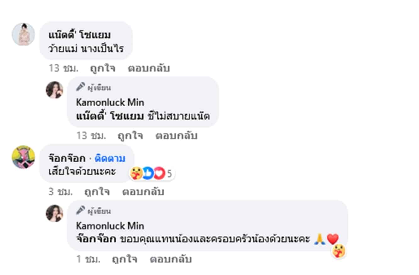 ใต้โพสต์ดังกล่าวได้มีเพื่อนพี่น้องเข้ามาแสดงความเสียใจจำนวนมาก สอบถามว่าปันปันเป็นอะไรเสีย คุณมินได้อธิบายว่าปันปันไม่สบาย