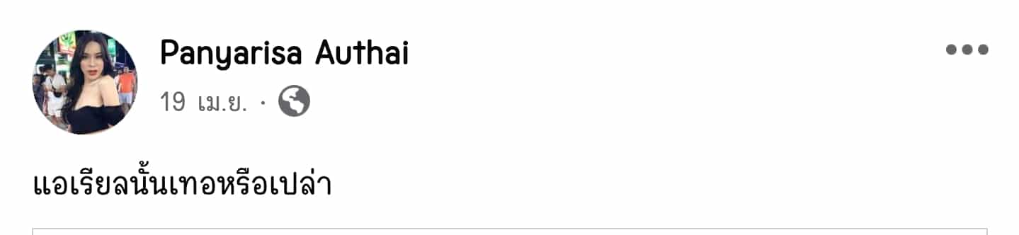 นับเป็นความสูญเสียอย่างกะทันหันที่ไม่มีเพื่อนคนไหนคาดคิด เมื่อตรวจสอบเฟซบุ๊กของปันปัน Pangarisa Authai ซึ่งมีผู้ติดตาม 2.2 หมื่นคน ได้โพสต์สเตตัสครั้งสุดท้ายเมื่อวันที่ 19 เมษายนว่า “แอเรียลนั่นเธอหรือเปล่า” โดยย้อนโพสต์เก่าๆ เธอไม่ได้เล่าถึงอาการป่วยของตัวเองให้ใครรู้ในพื้นที่สาธารณะแต่อย่างใด