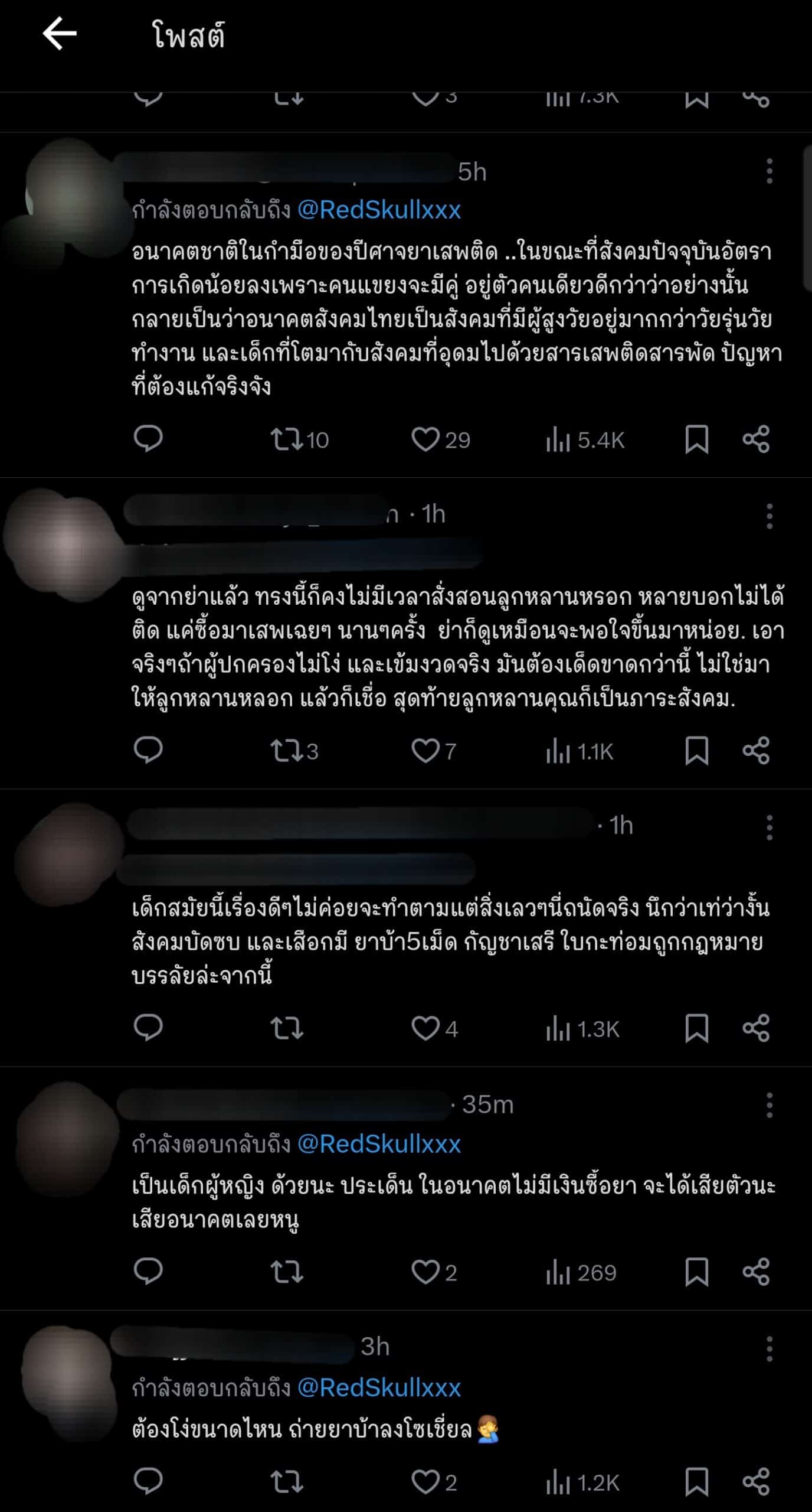 “เด็กสมัยนี้เรื่องดีๆไม่ค่อยจะทำตามแต่สิ่งเลวๆนี่ถนัดจริง นึกว่าเท่ว่างั้น สังคมบัดชบ และเสือกมี ยาบ้า5 เม็ด กัญชาเสรี ใบกะท่อมถูกกฎหมาย บรรลัยล่ะจากนี้”