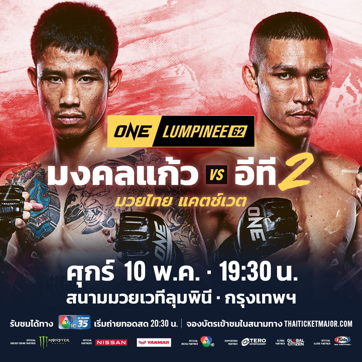 สำหรับ “มงคลแก้ว” และ “อีที” เคยประชันฝีมือกันมาแล้วในศึก ONE ลุมพินี 39 ซึ่งบทสรุปในวันนั้น เป็น “อีที” ที่ปิดเกมน็อกไปได้ในยกสุดท้าย ครั้งนี้จึงเป็นโอกาสที่ทั้งคู่จะกลับมาสะสางบัญชีที่เคยติดค้าง โดยจะซัดกันในกติกามวยไทย พิกัดเฉพาะ (แคตช์เวต) 130 ป.