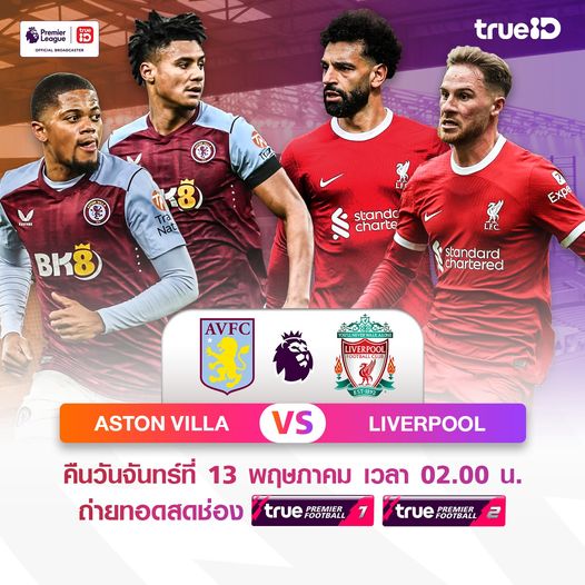 แอสตัน วิลล่า พบ ลิเวอร์พูล ดูบอลสด ฟุตบอล พรีเมียร์ลีก พร้อมช่องถ่ายทอดสด 13 พ.ค. 67